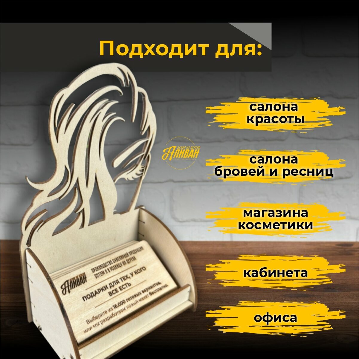 Подставка под визитки для парикмахерской, салона красоты кудри натуральный