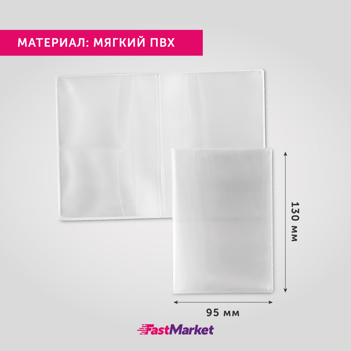Обложка на паспорт FastMarket с отделениями для водительских прав, снилс, банковских карт, цвет прозрачный