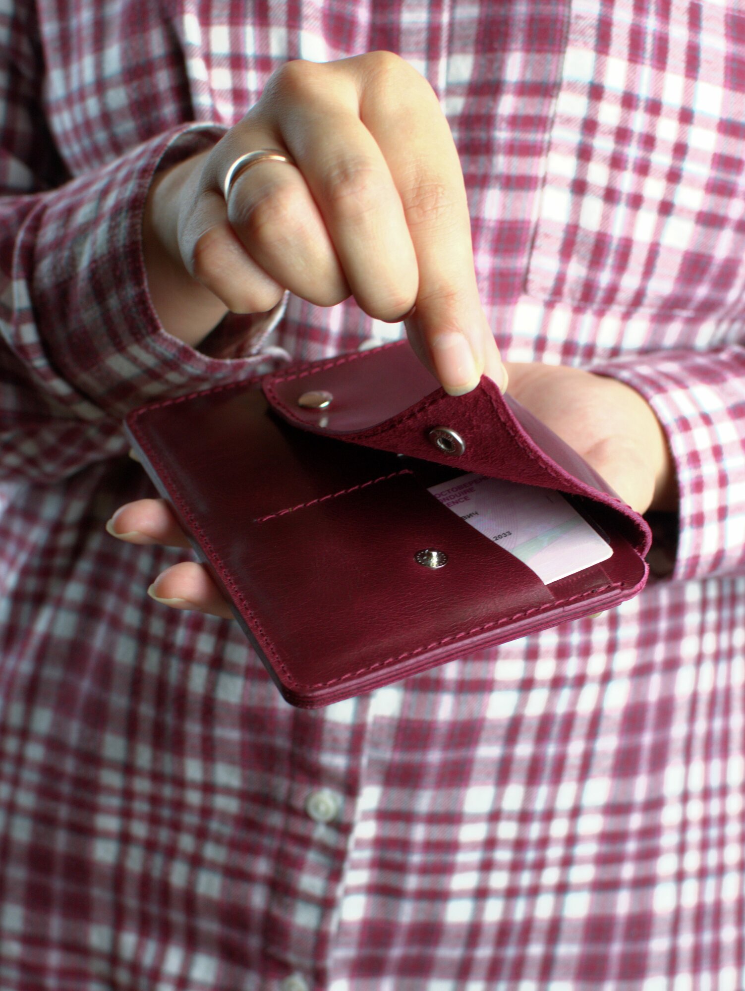 Кошелек-документница из натуральной кожи для женщин и мужчин, цвет бордовый