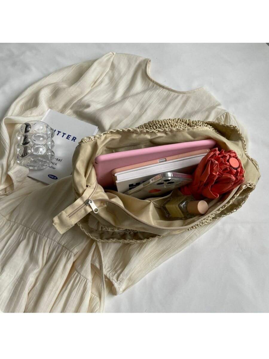 Сумка пляжная , фактура вязаная, плетеная, коричневый ротанг интересное: