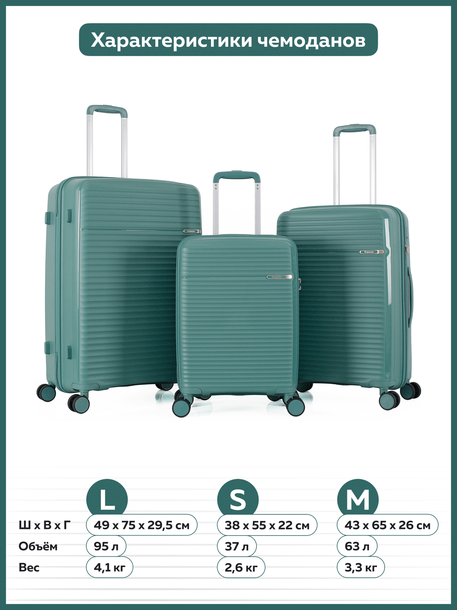 | Количество чемоданов в комплекте | Чемодан дорожный ROBINZON Hokkaido S - 1 шт. |