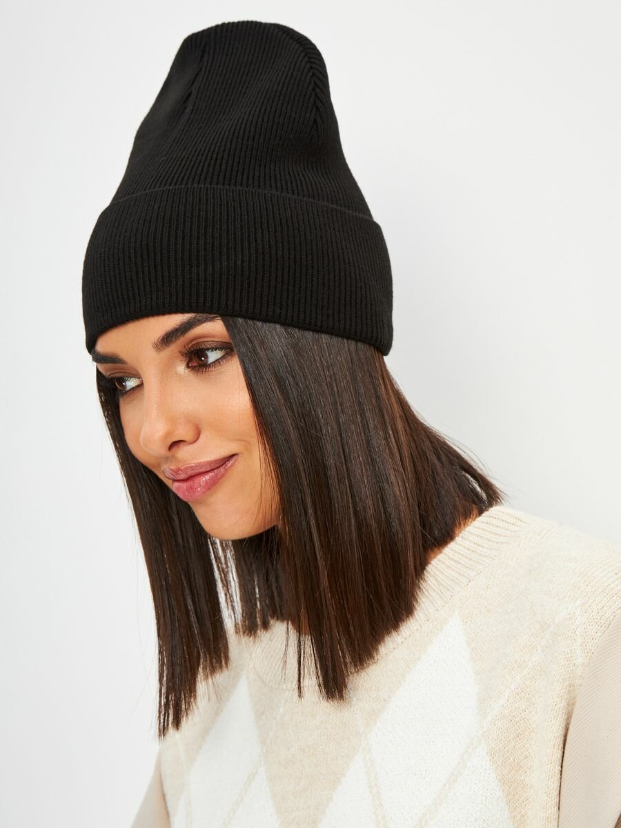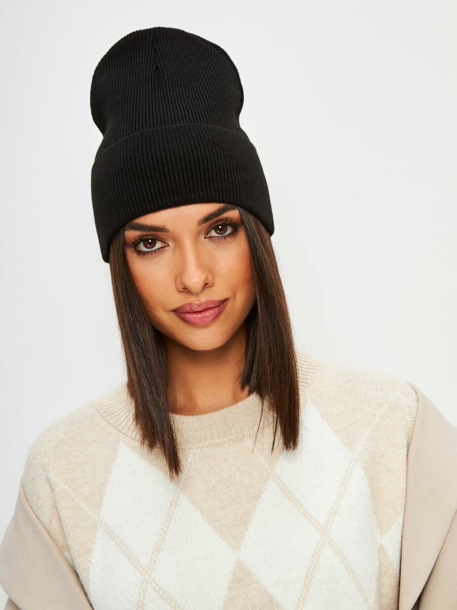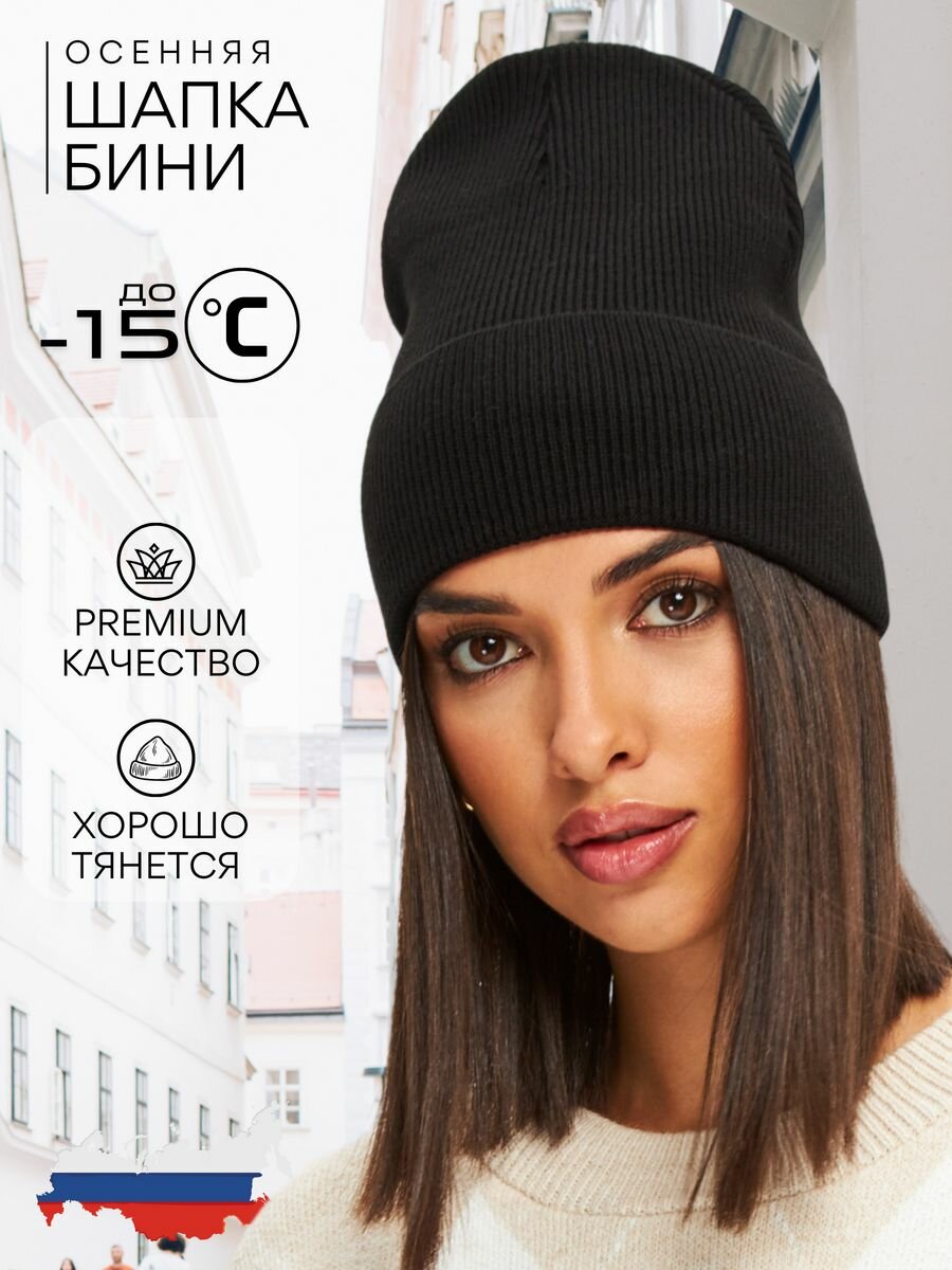 Купить Шапка бини Шапка бини женская для женщин, размер ONE SIZE 50-58, черный