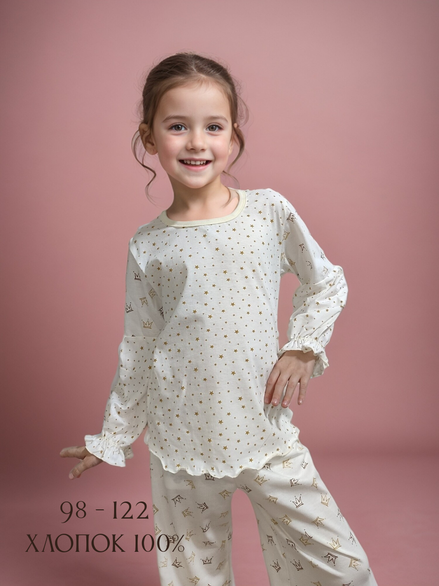 Бежевая пижама "КитаМиш" для девочек, размер 26 - 98