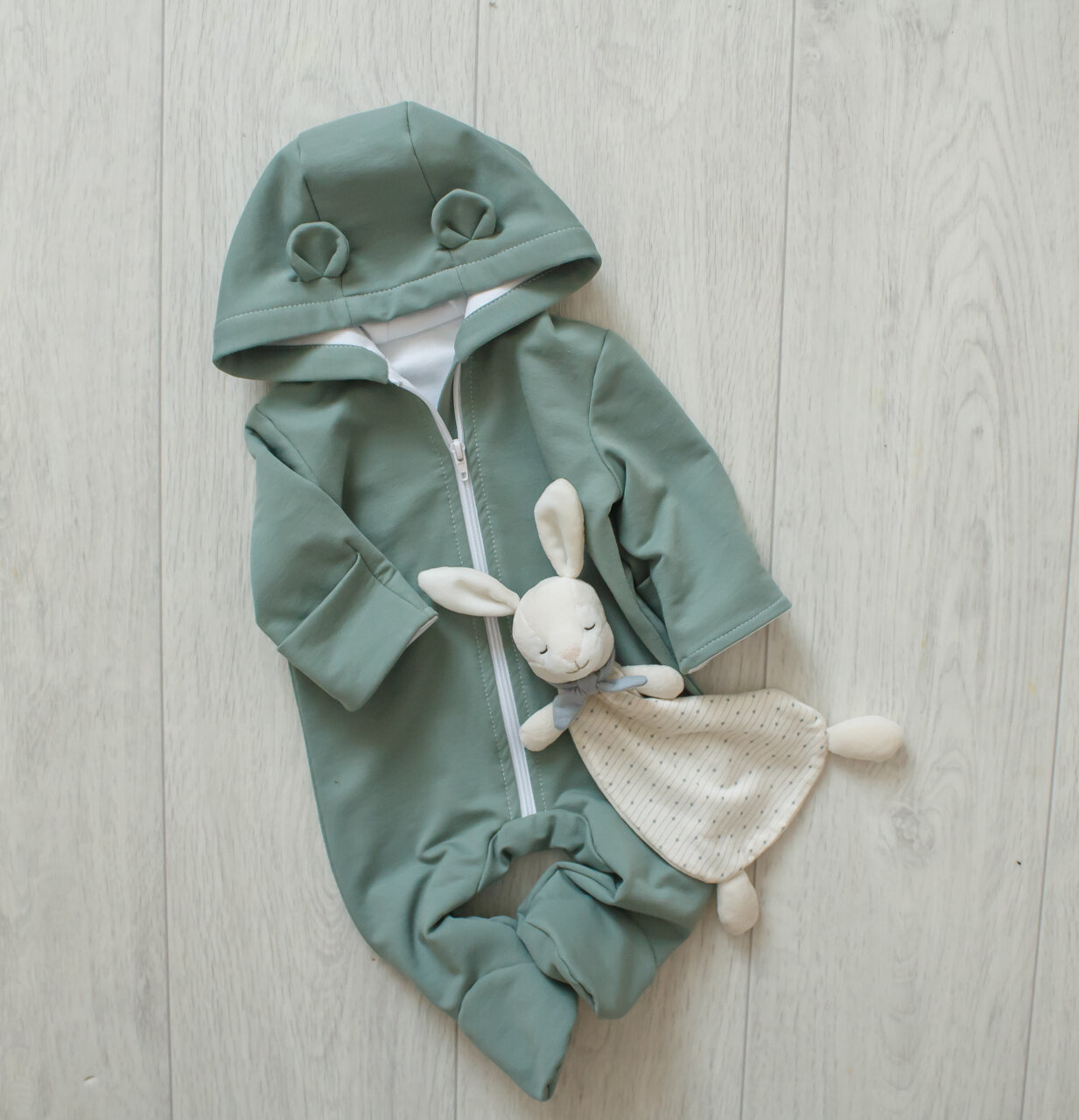 Детский комбинезон из футера, 68 размер (от 3 до 6 мес.), MAMINY ZAPISKY, зеленый, закрытые ножки