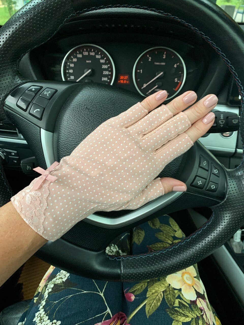 Японские солнцезащитные перчатки c бантиком и кружевным уголком, розовые