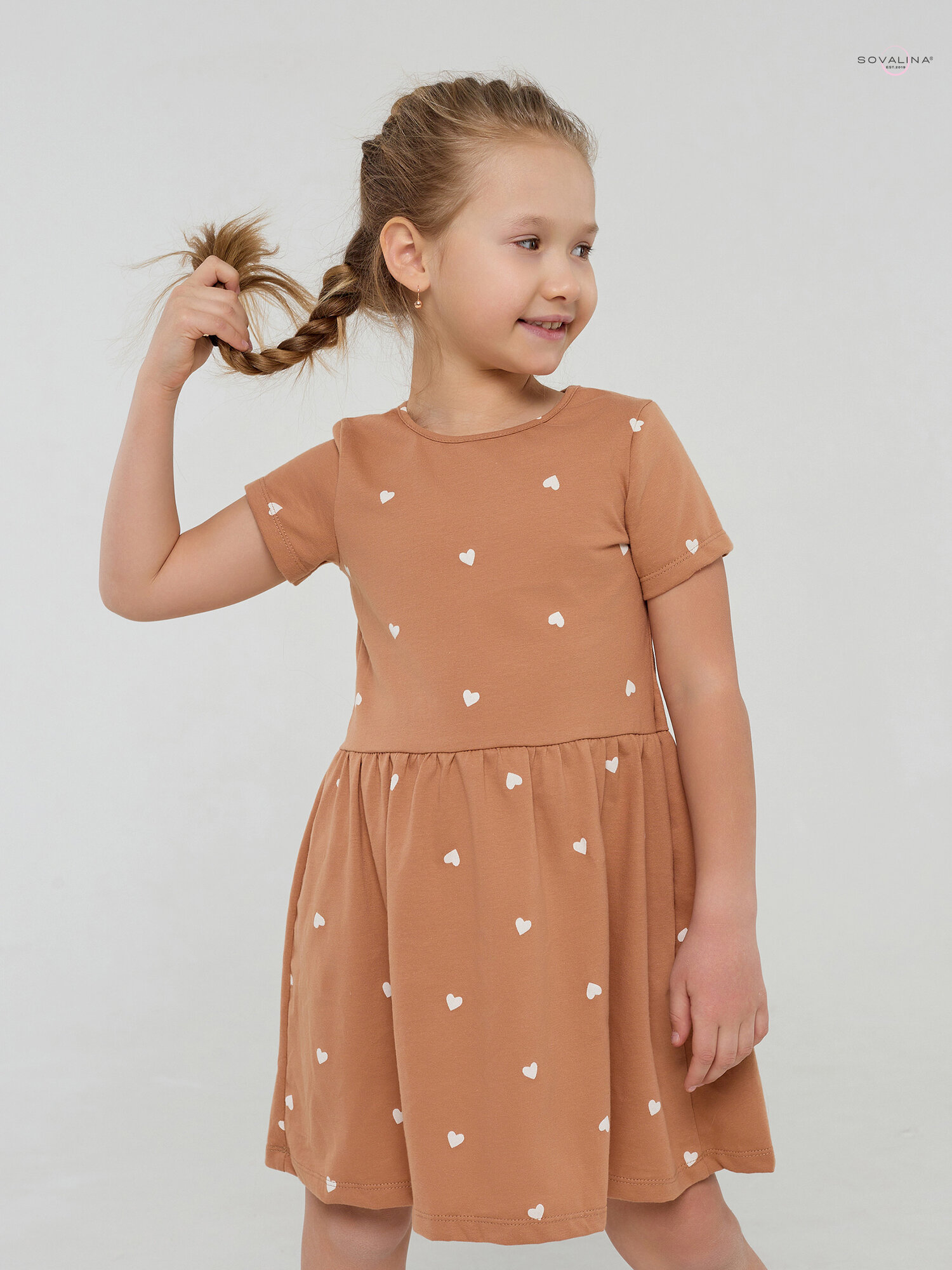 Платье для девочки SOVAlina Лето "Сердца на песочном, коричневое, размер 104