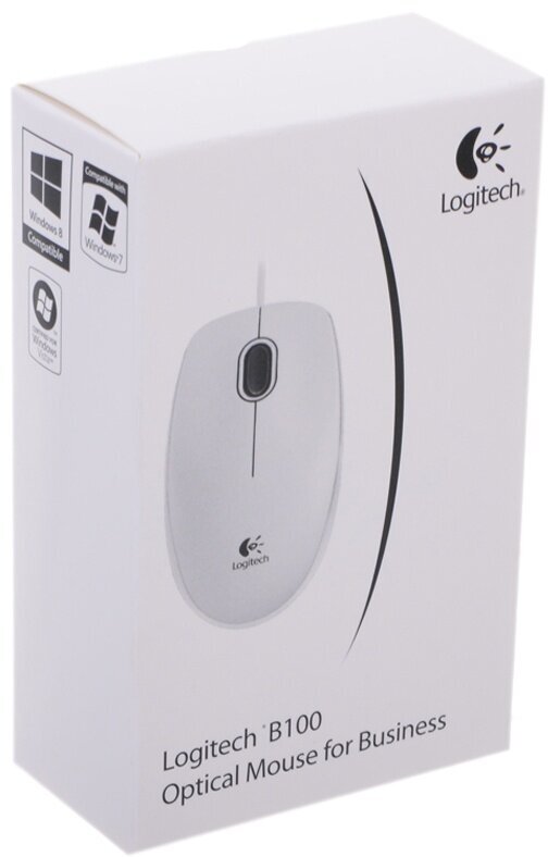 Мышь проводная LOGITECH B100, USB, 2 кнопки + 1 колесо-кнопка, оптическая, белая