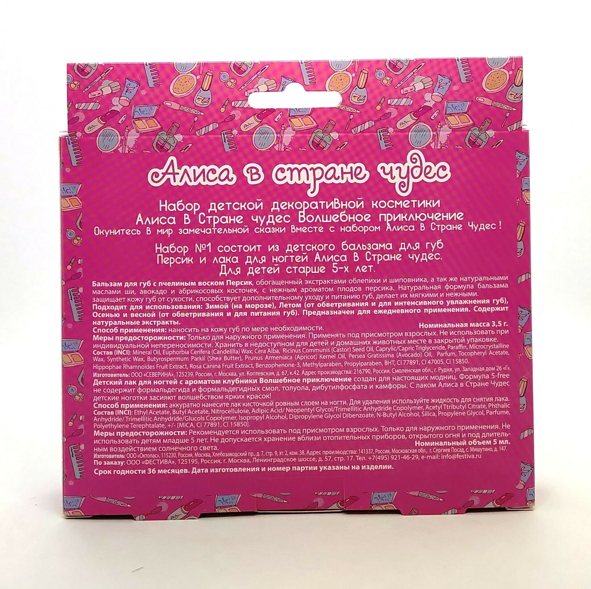 Набор детской косметики FESTIVA "Алиса в Стране Чудес", №1, бальзам для губ Персик, лак для ногтей Волшебное приключение