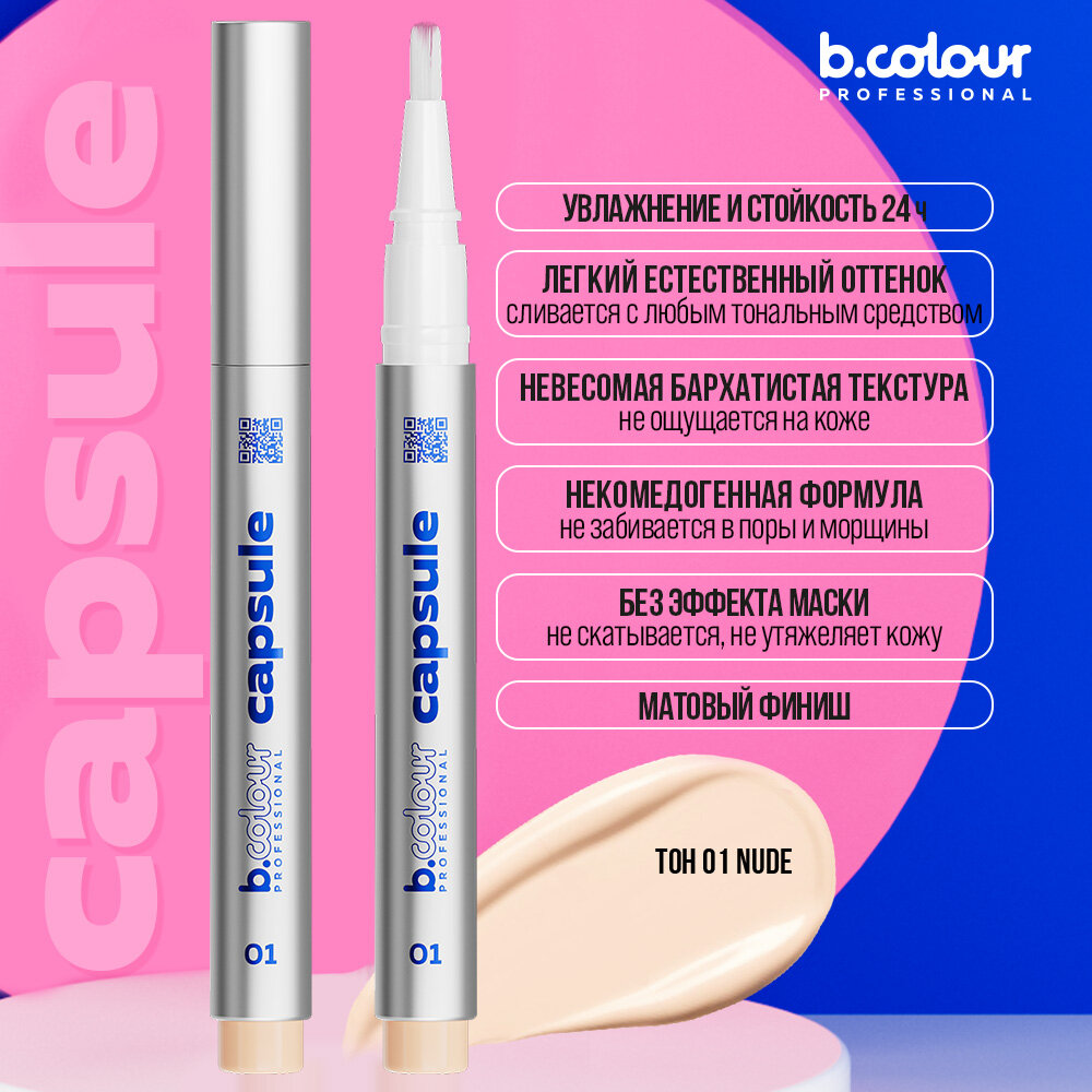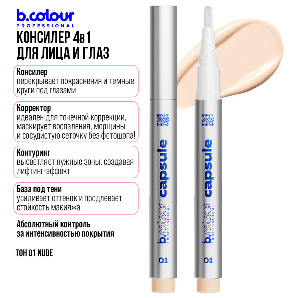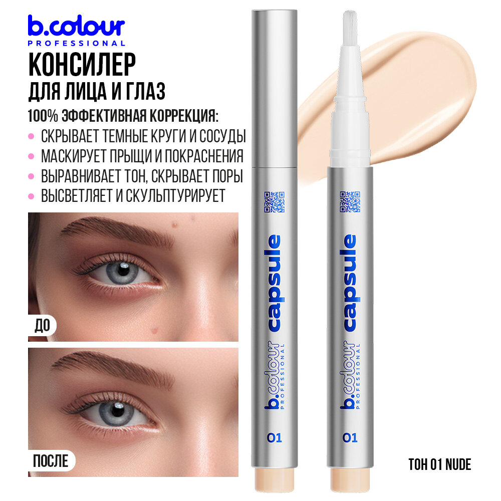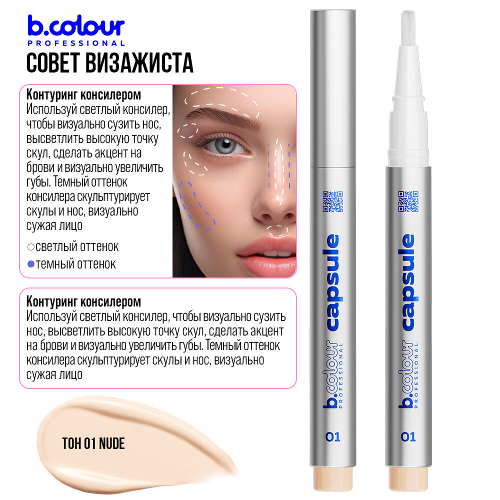 Купить B.COLOUR PROFESSIONAL Консилер для лица, корректор от темных кругов, увлажняющий, светлый CAPSULE 01 NUDE