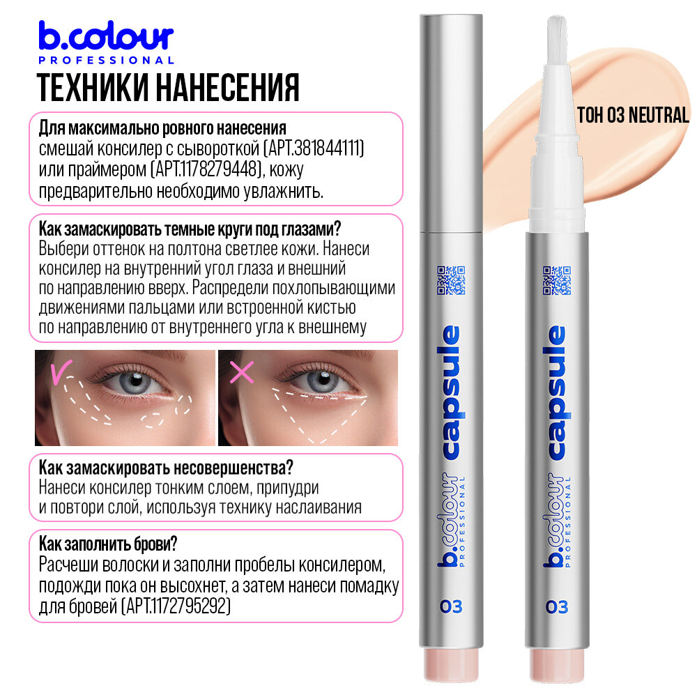 Купить B.COLOUR PROFESSIONAL Консилер для лица, корректор от темных кругов, увлажняющий CAPSULE 03 NEUTRAL