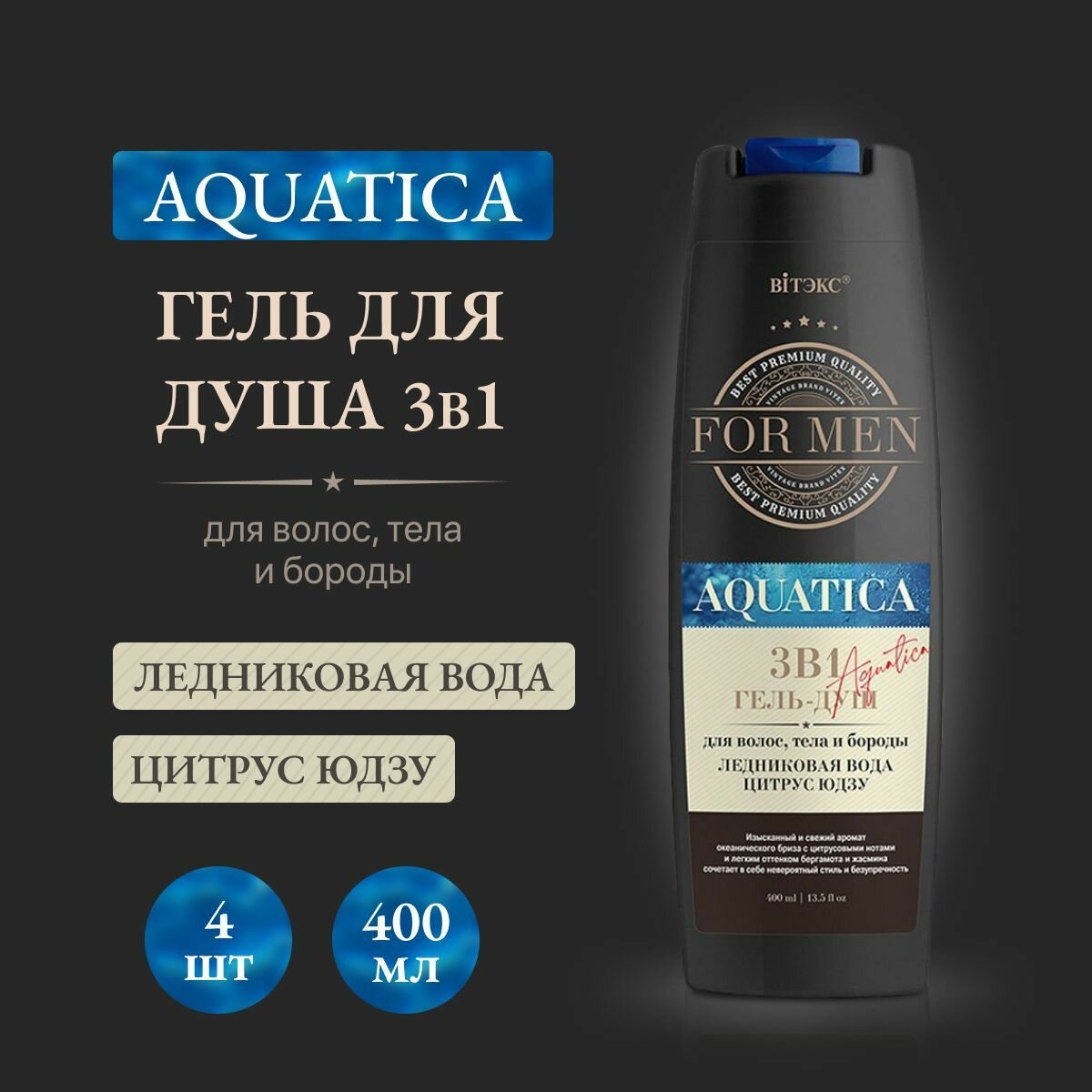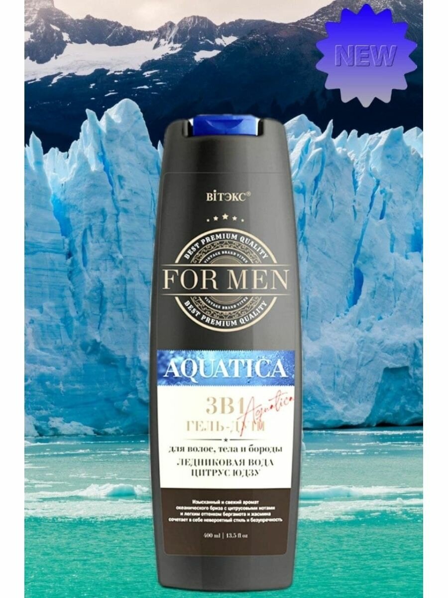 Витекс For Men 3в1 Гель-душ для волос, тела и бороды Ледниковая вода и Цитрус юдзу. 400мл