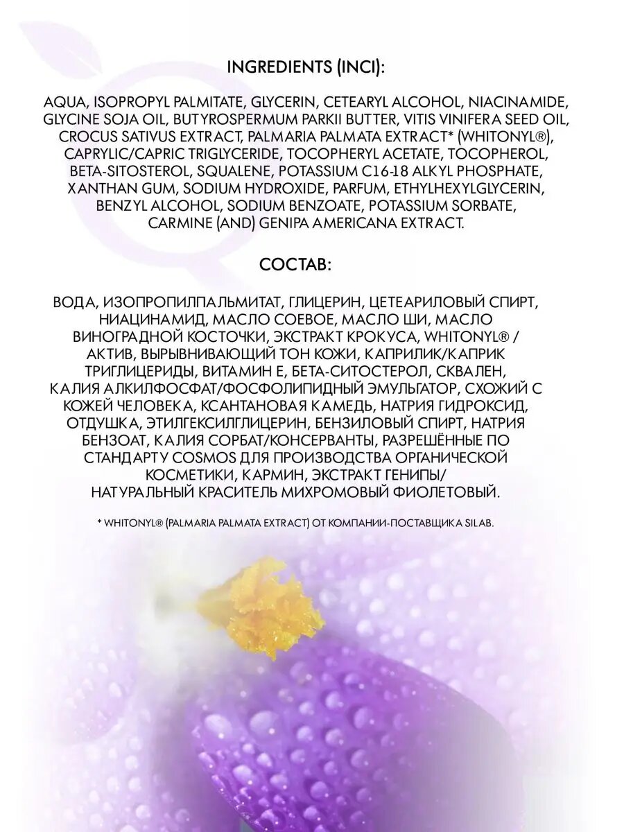 | Масла и эссенции | масло персика / масло соевое / масло ши (карите) / витамин в3 / витамины а и е / ниацинамид / ретинол / токоферол |