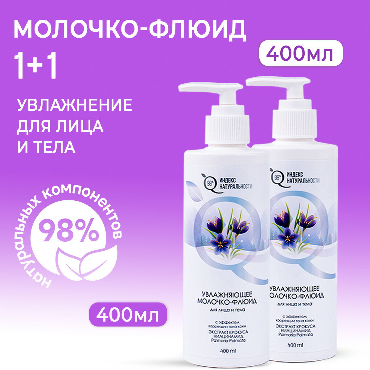 Молочко ИНДЕКС НАТУРАЛЬНОСТИ флюид увлажняющее для лица и тела 250 мл