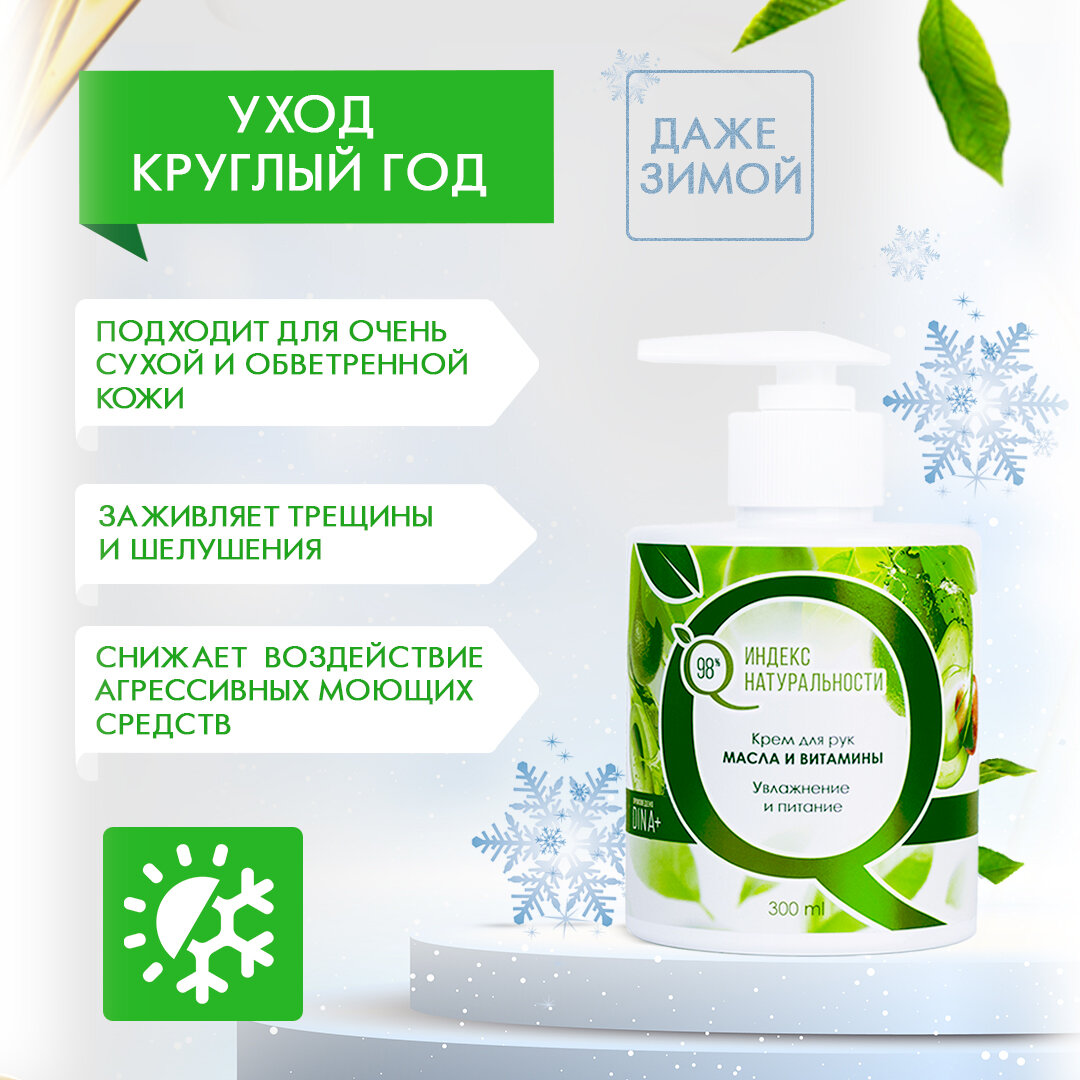Крем для рук Индекс натуральности, Масла и витамины, 300 мл