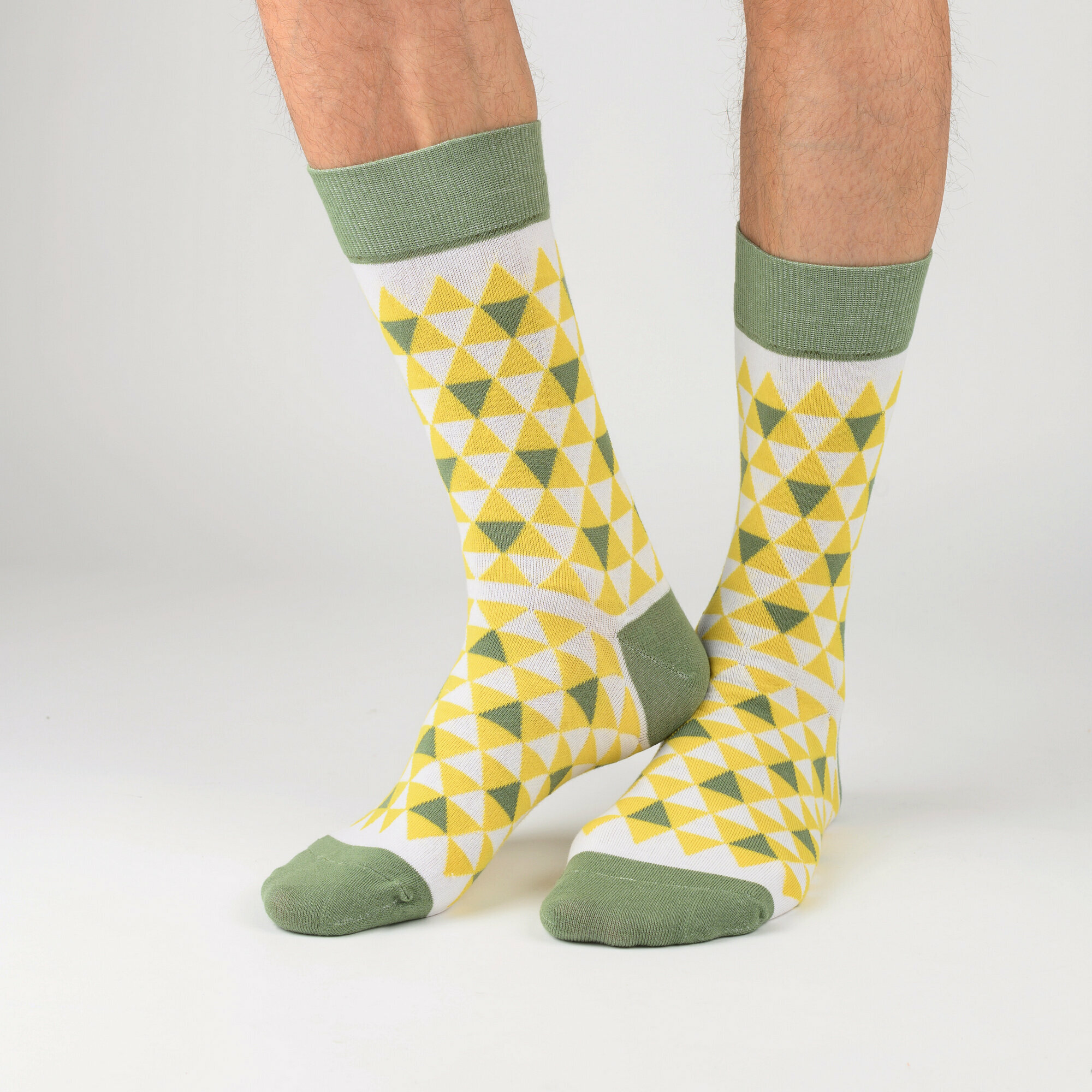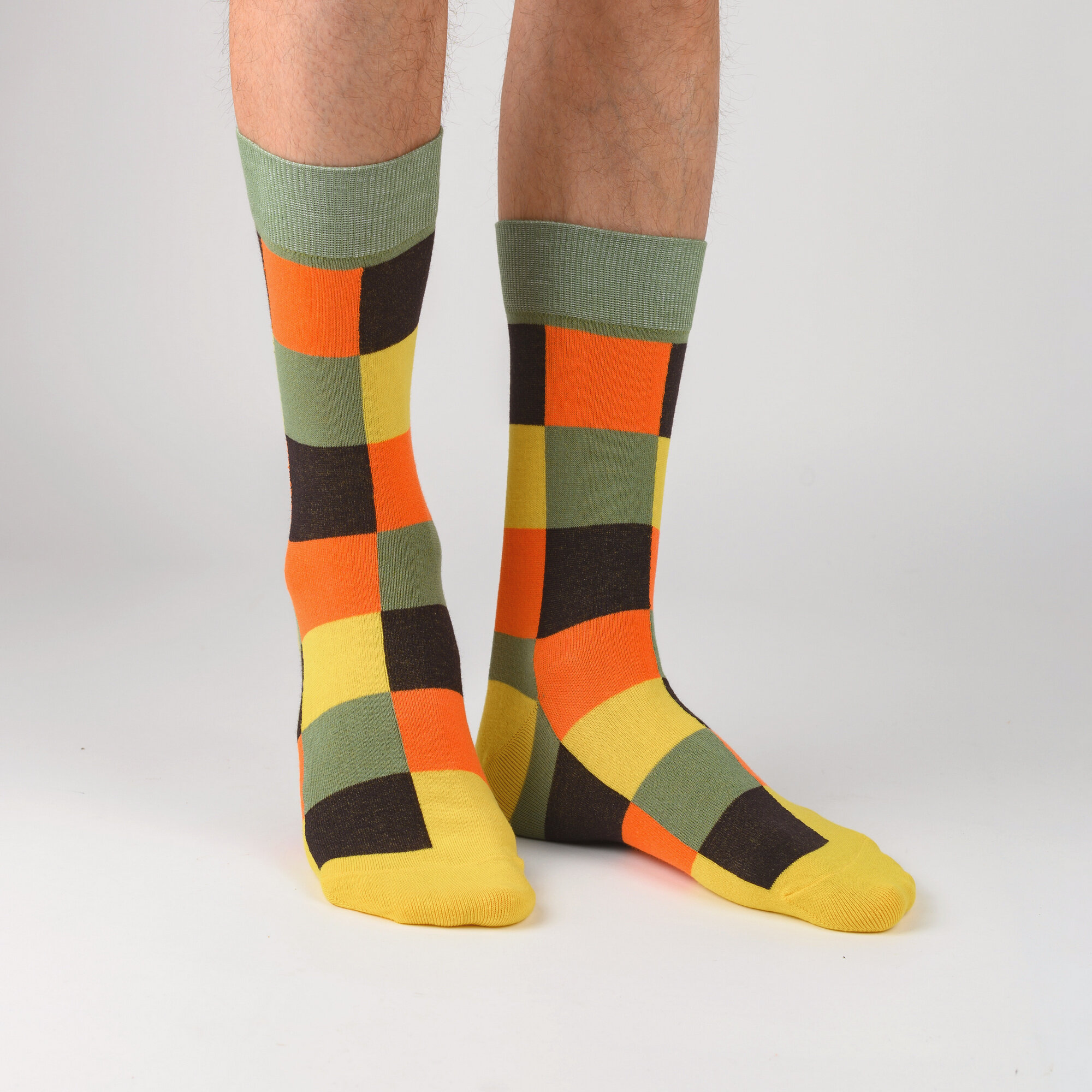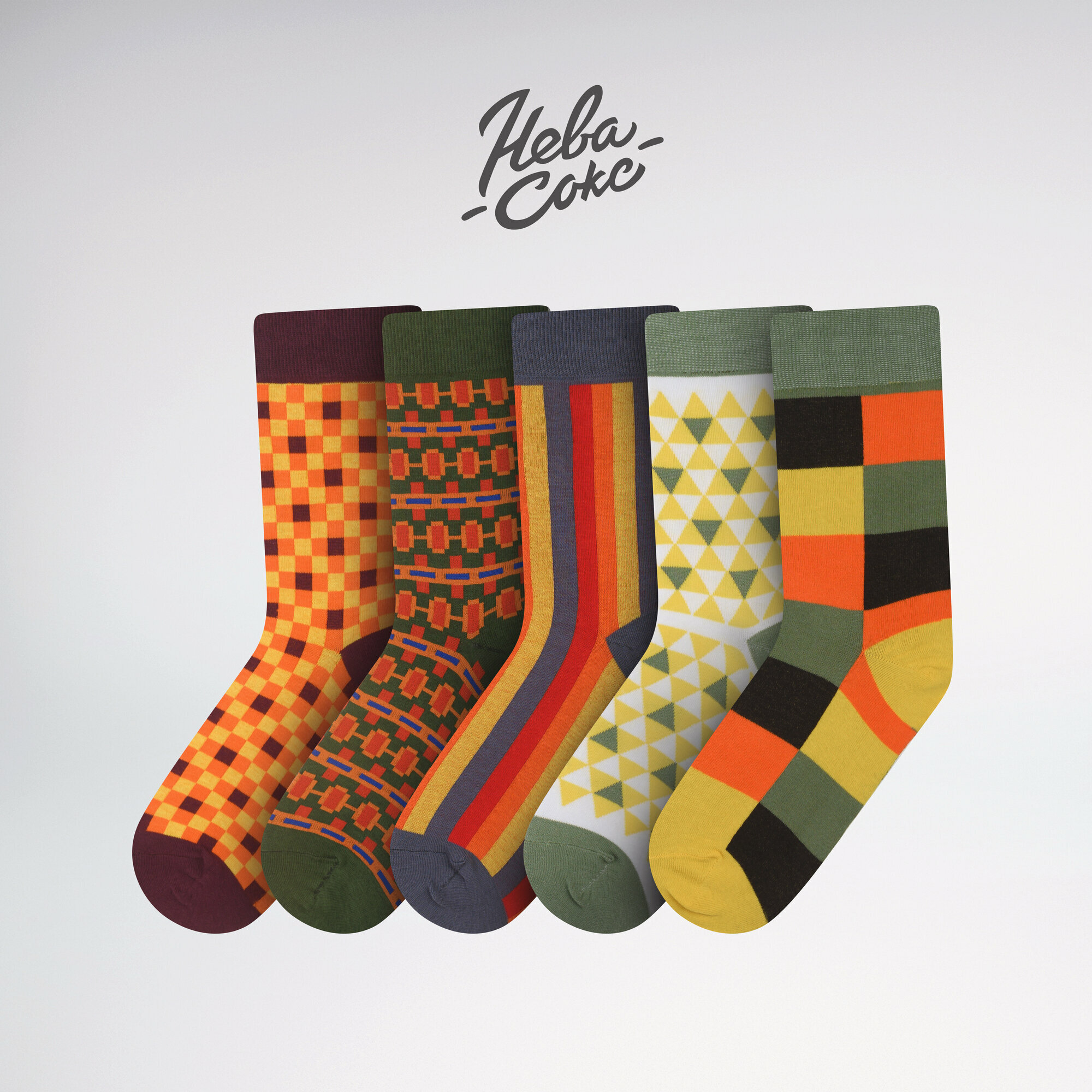 НС-5-210 Набор из 5 пар мужских носков "Нева-Сокс" желтые оранжевые клетка полоска ромб принт рисунок яркие цветные разноцветные повседневные длинные высокие средние хлопок хб хлопковые коробка комплект подарок