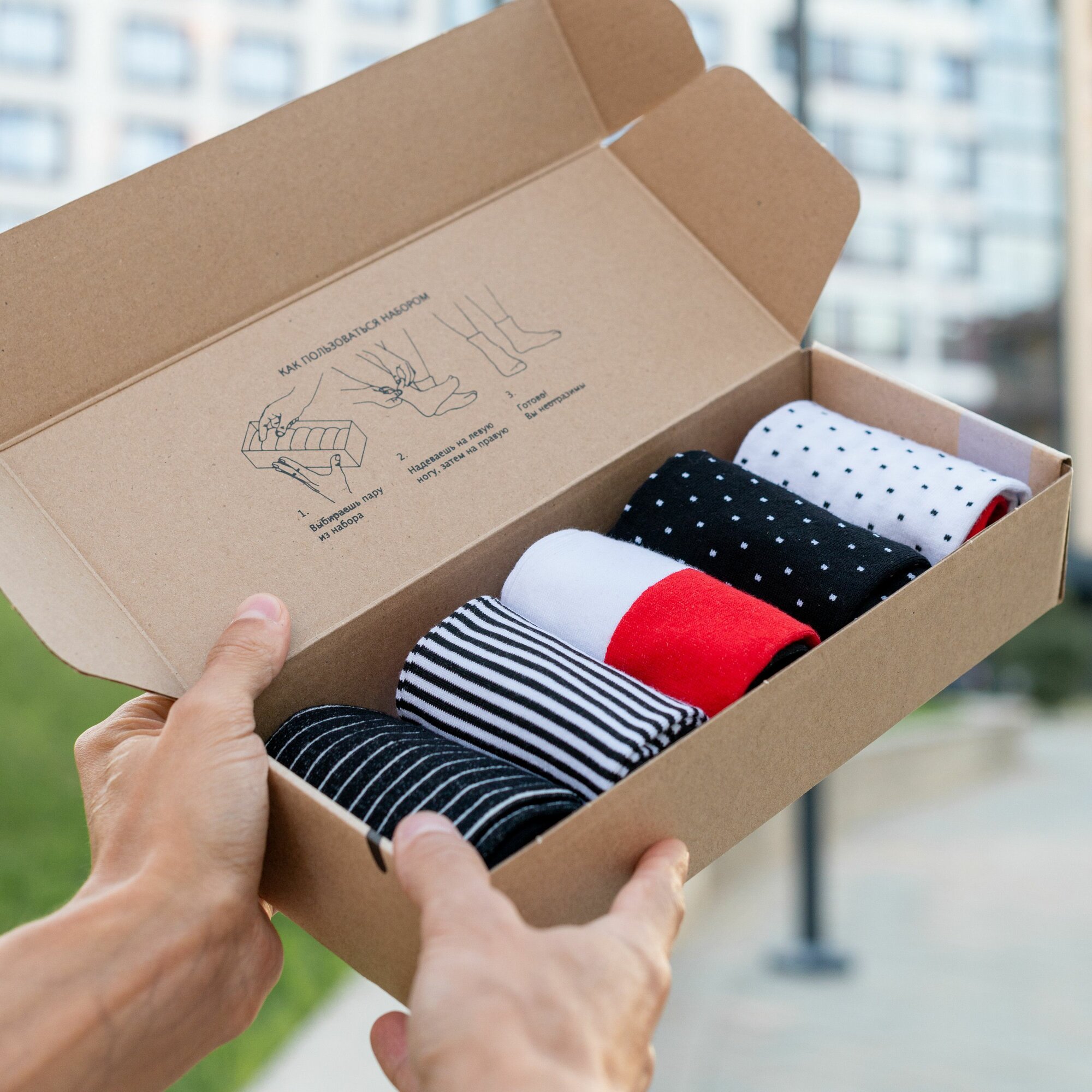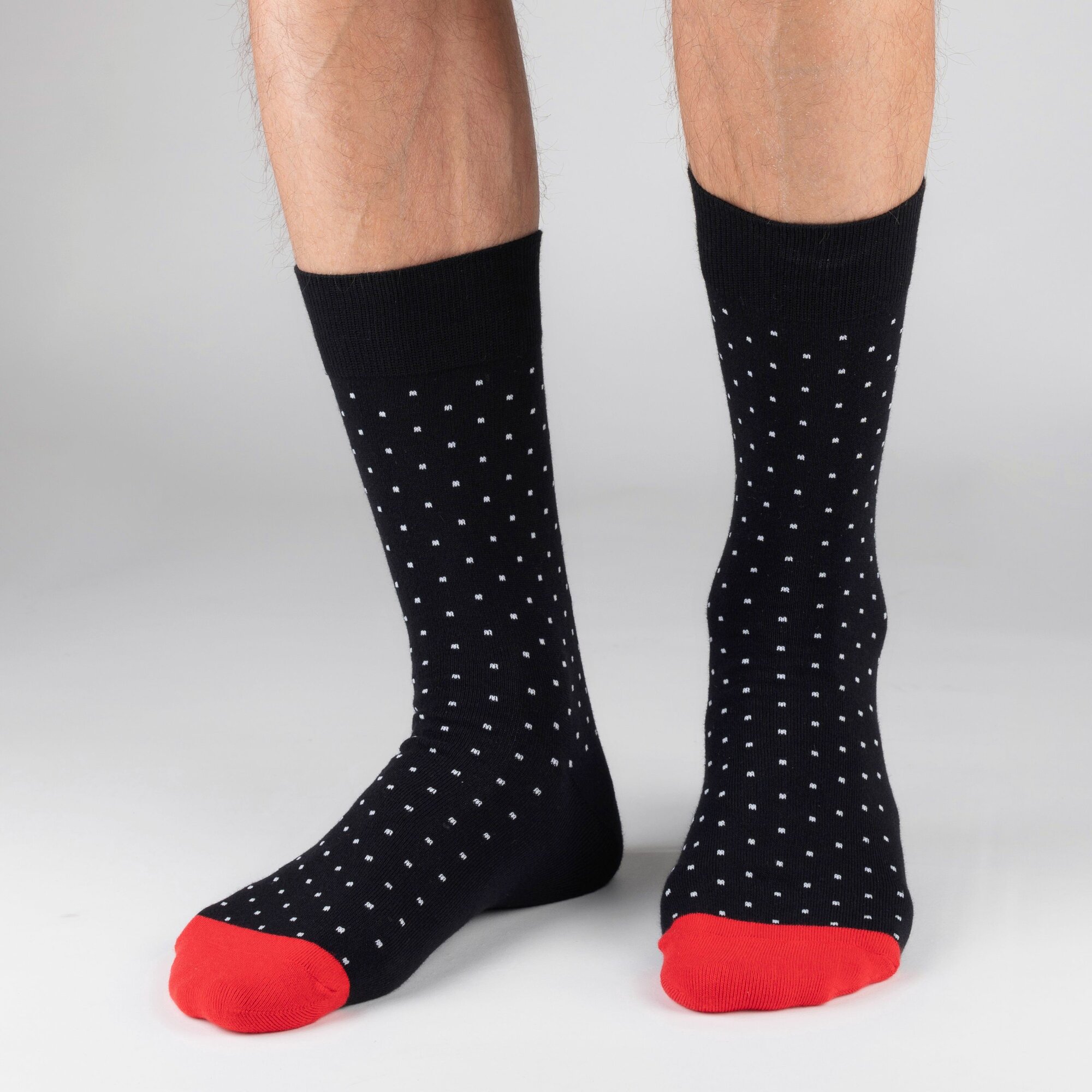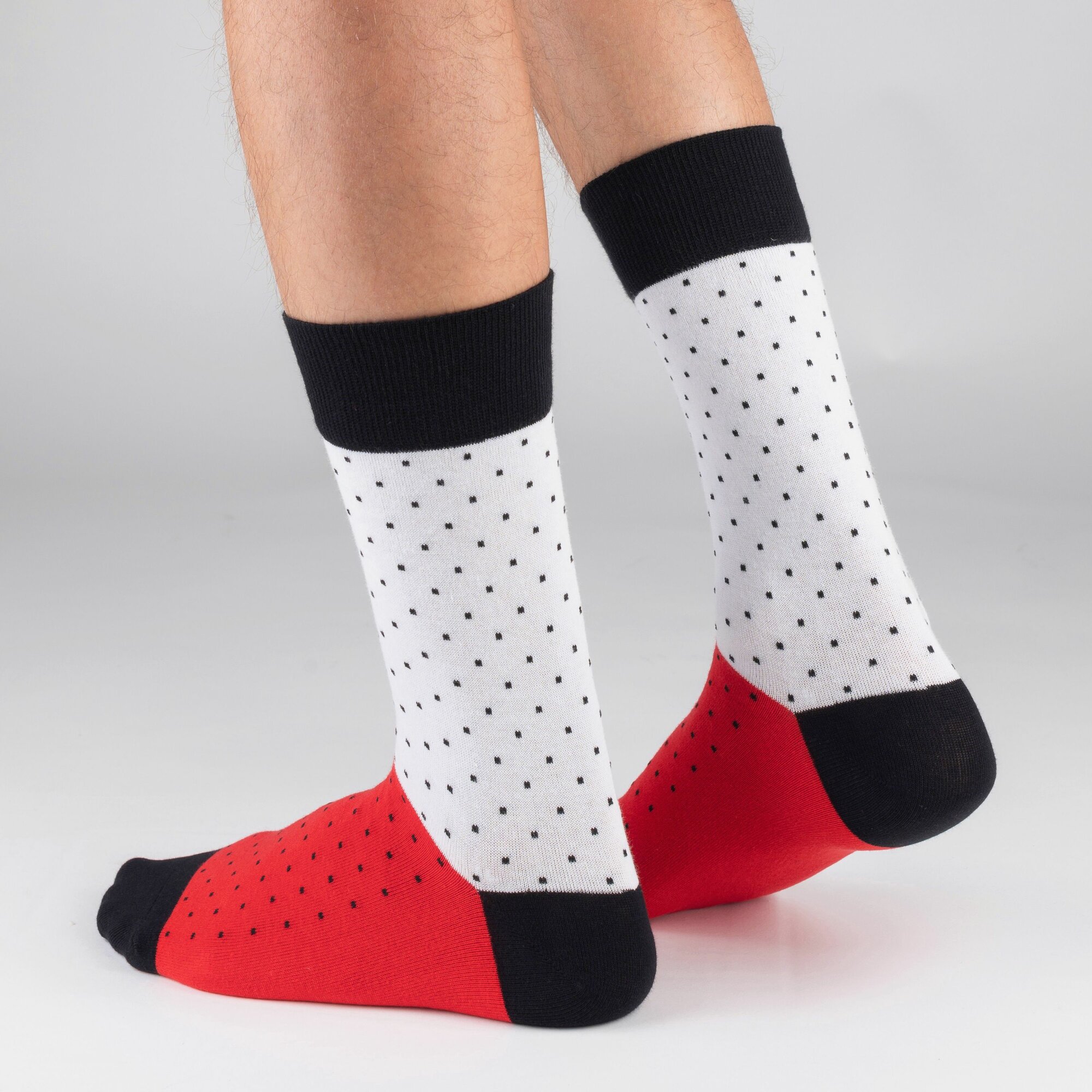НС-5-220 Набор из 5 пар мужских носков "Нева-Сокс" белые черные красные горох полоска принт рисунок средние высокие длинные хлопок хб хлопковые разноцветные комплект упаковка микс снегири прилетели