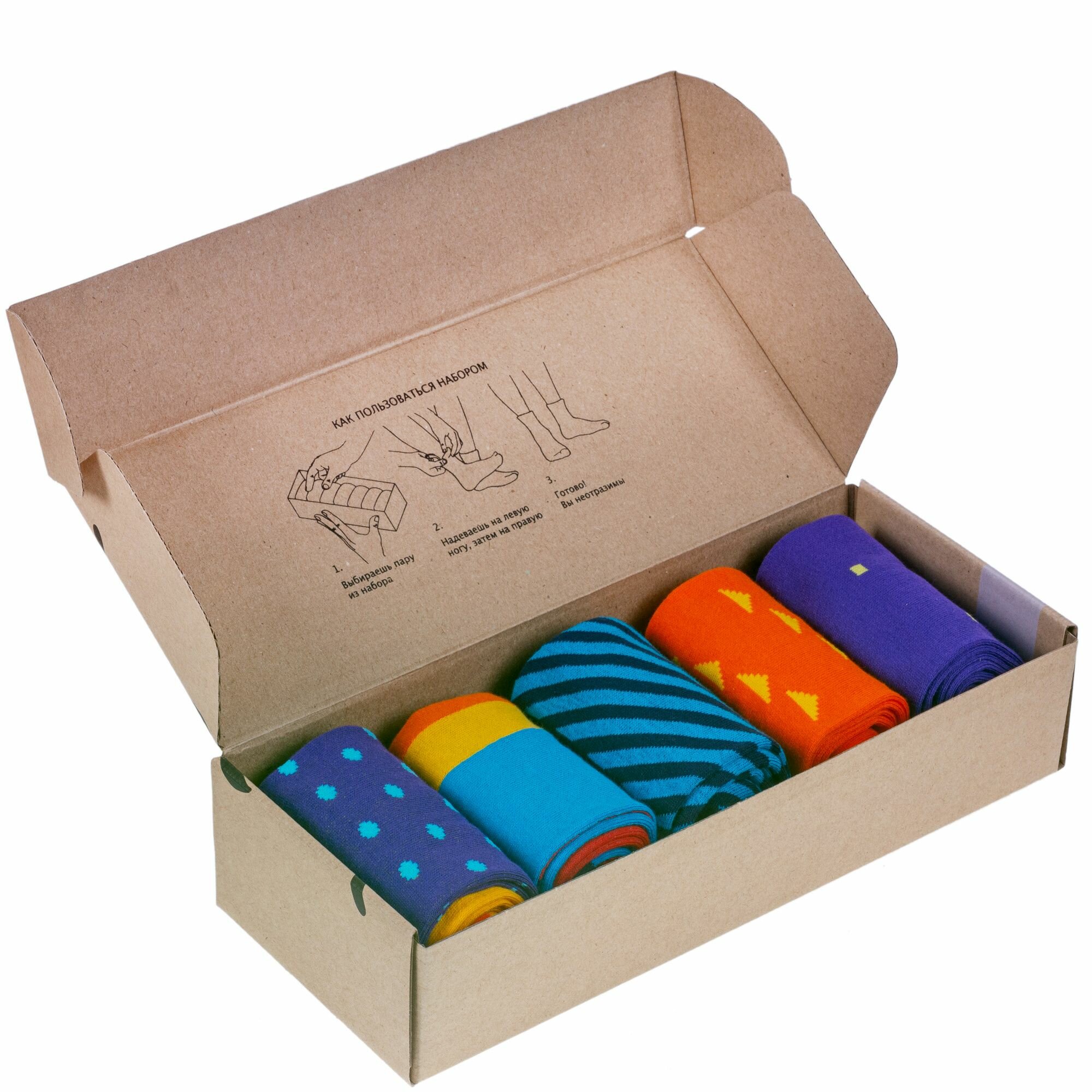 НС-5-205 Набор из 5 пар мужских носков "Нева-Сокс" принт рисунок яркие цветные разноцветные повседневные длинные высокие средние хлопок хб хлопковые коробка комплект подарок