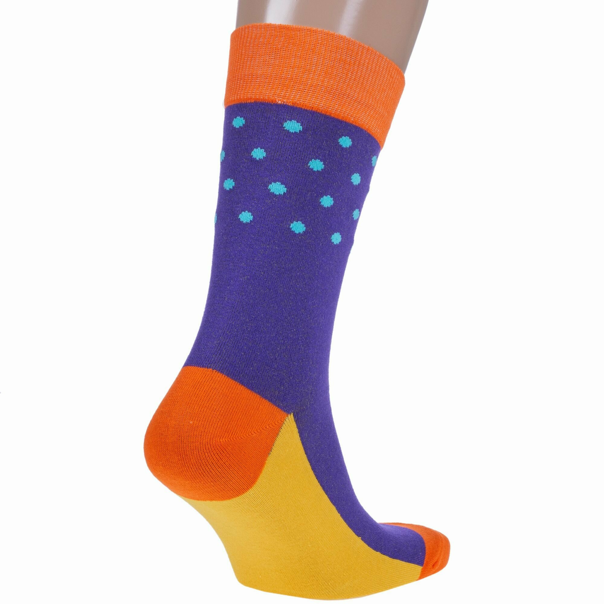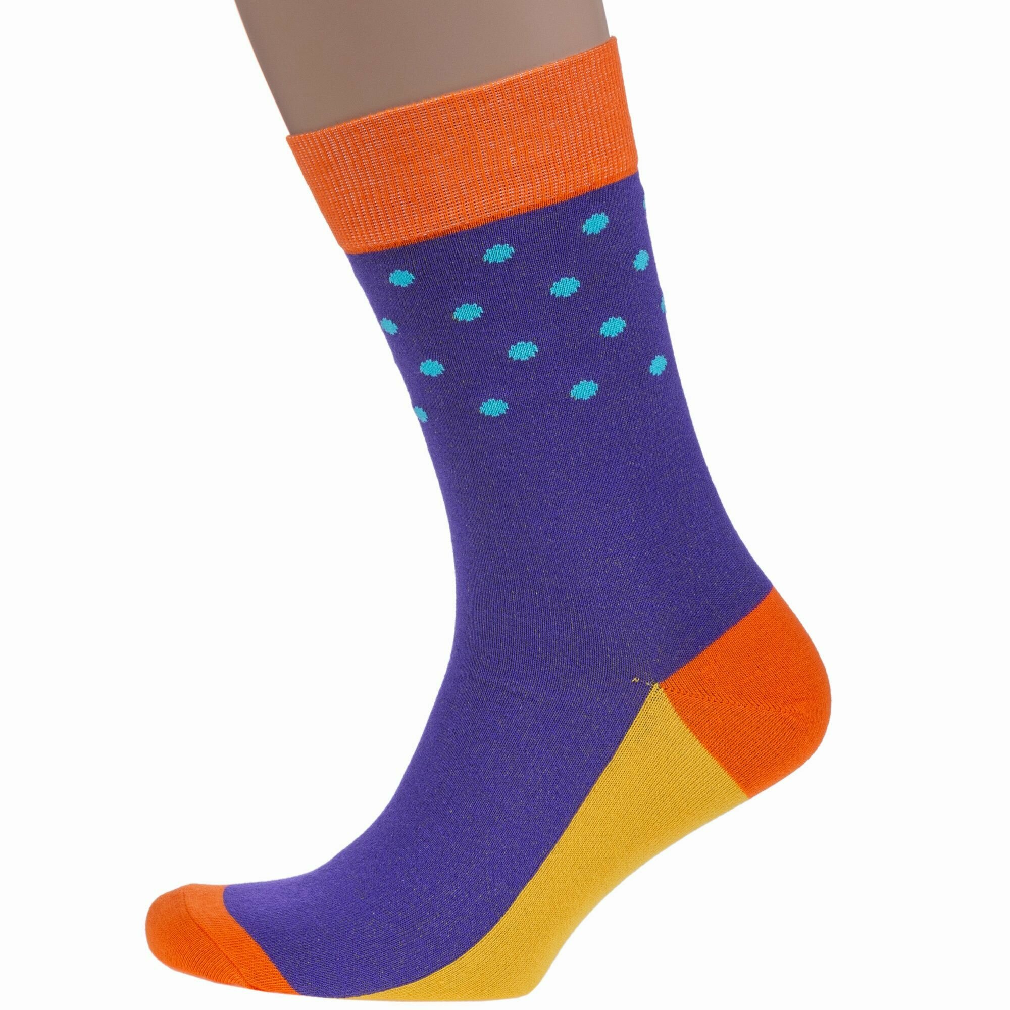 НС-5-211 Набор из 5 пар мужских носков "Нева-Сокс" фиолетовые оранжевые яркие повседневные полоска горох принт рисунок длинные высокие средние хлопок хб хлопковые коробка комплект подарок