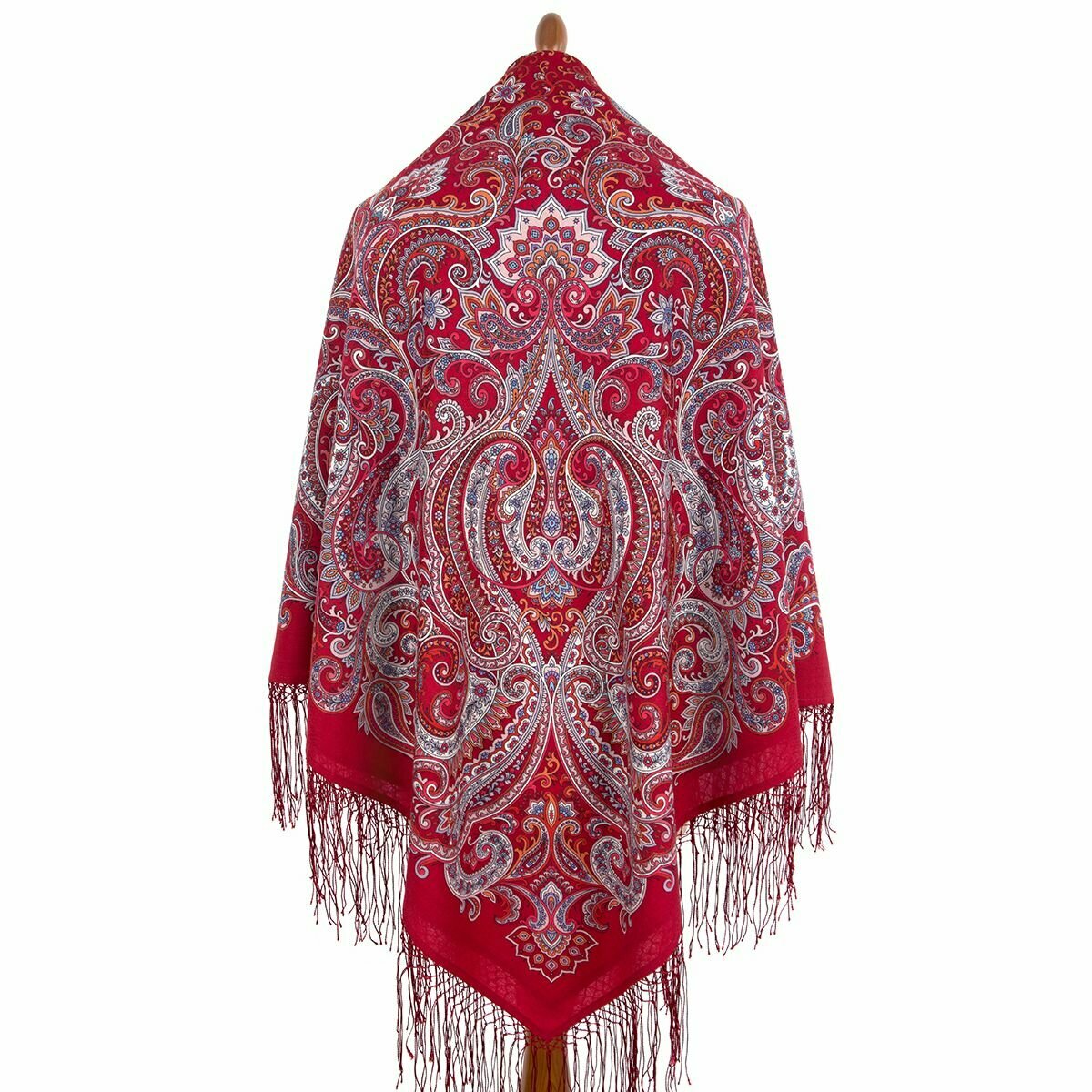 Платок Павловопосадская платочная мануфактура для женщин,135х135 см, красный интересное:
