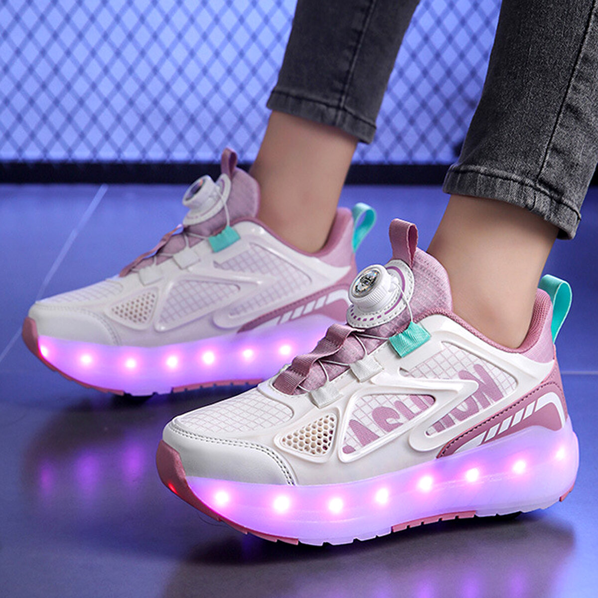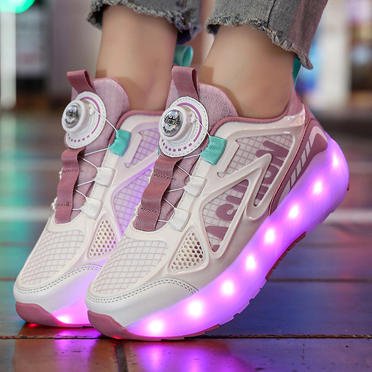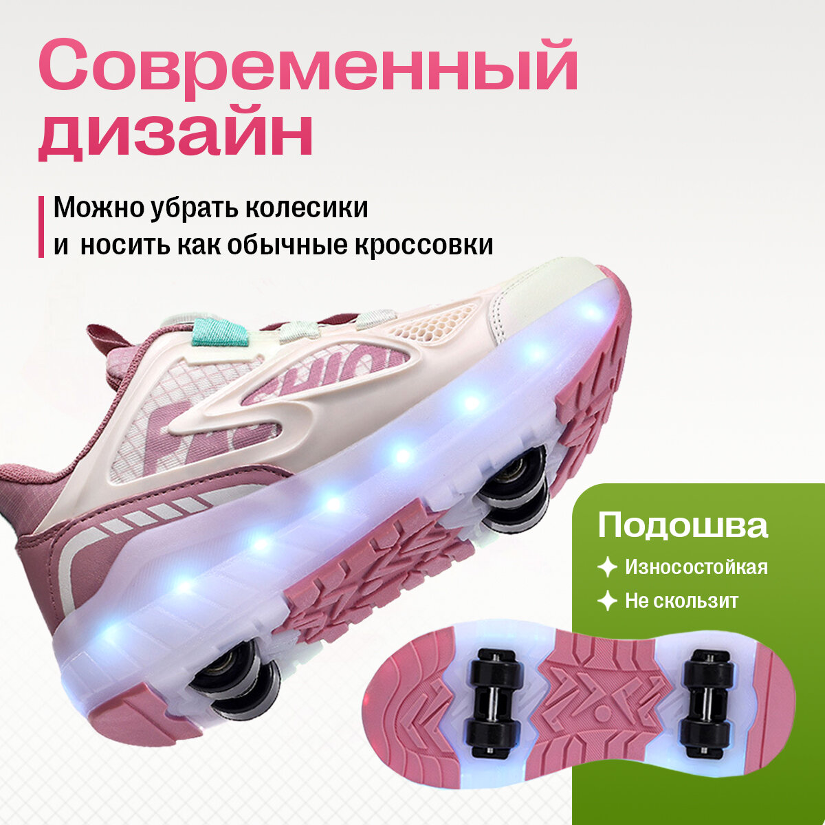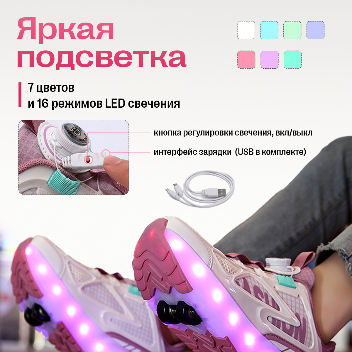 Роликовые кроссовки на 4-х роликах светящиеся с USB