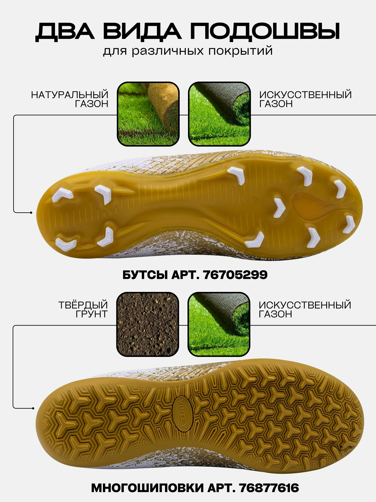 Бутсы Virtey, размер 38, белый/золотой интересное:
