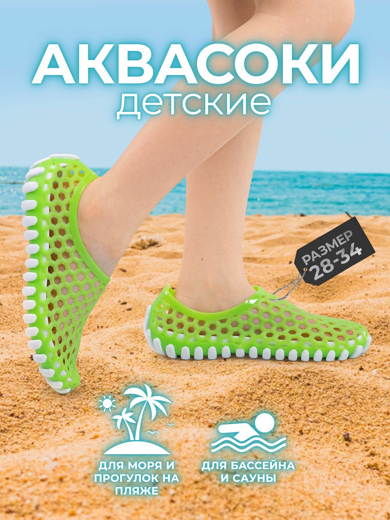 Акваобувь, размер 30-31, белый, зеленый интересное: