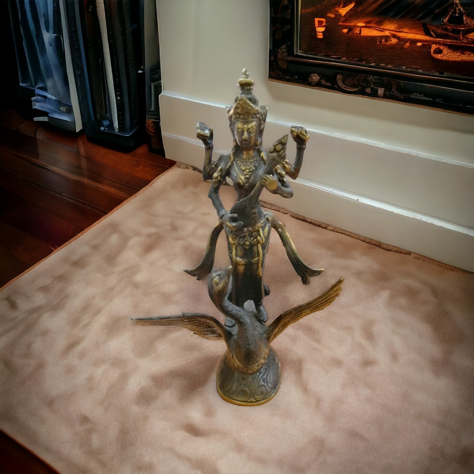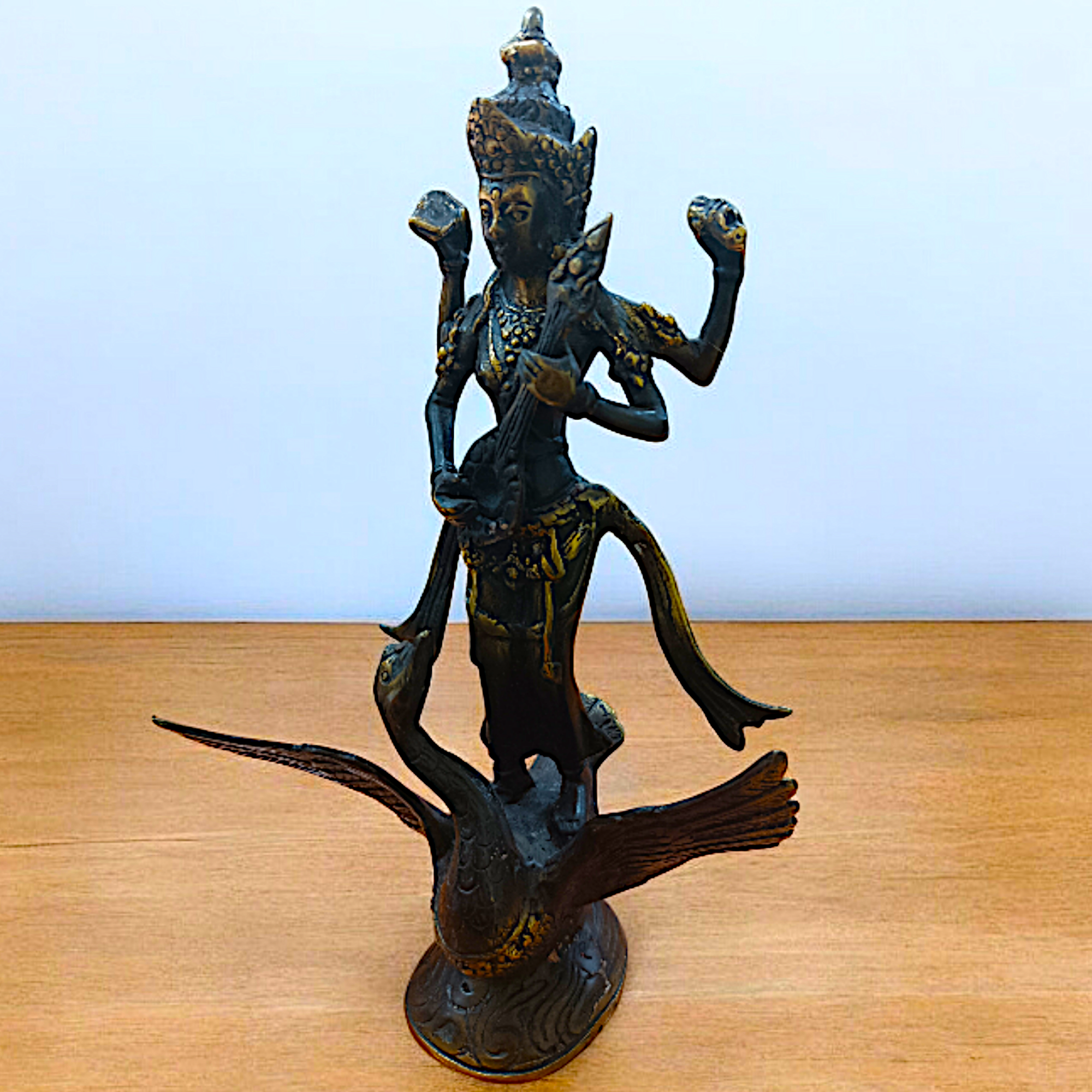 Бронзовая фигура Богиня мудрости Сарасвати на лебеде 25 см / Большая статуэтка из бронзы ручной работы, Индонезия интересное:
