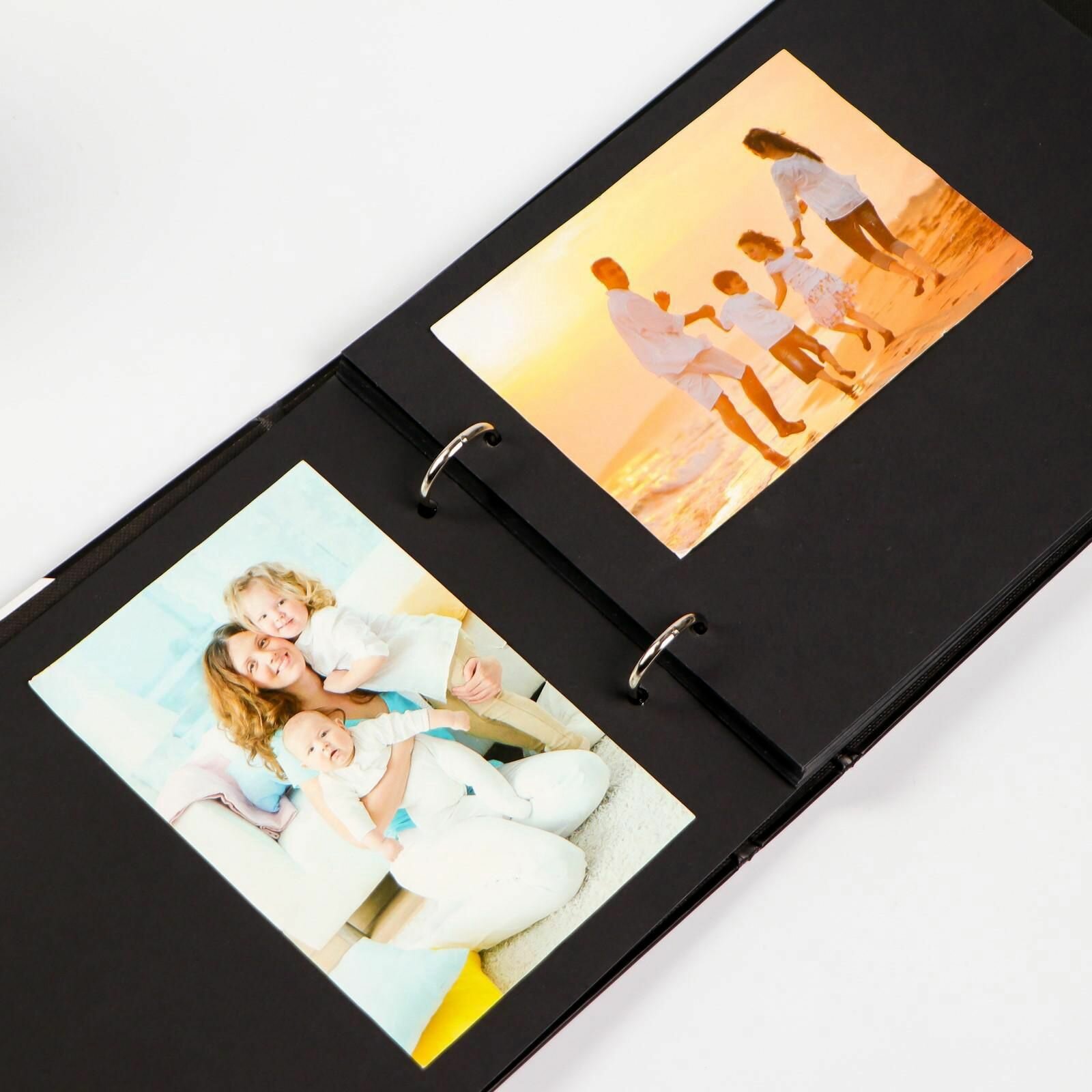 Фотоальбом на кольцах 30 листов "Фотоаппарат на плитке" чёрные листы 18х18 см
