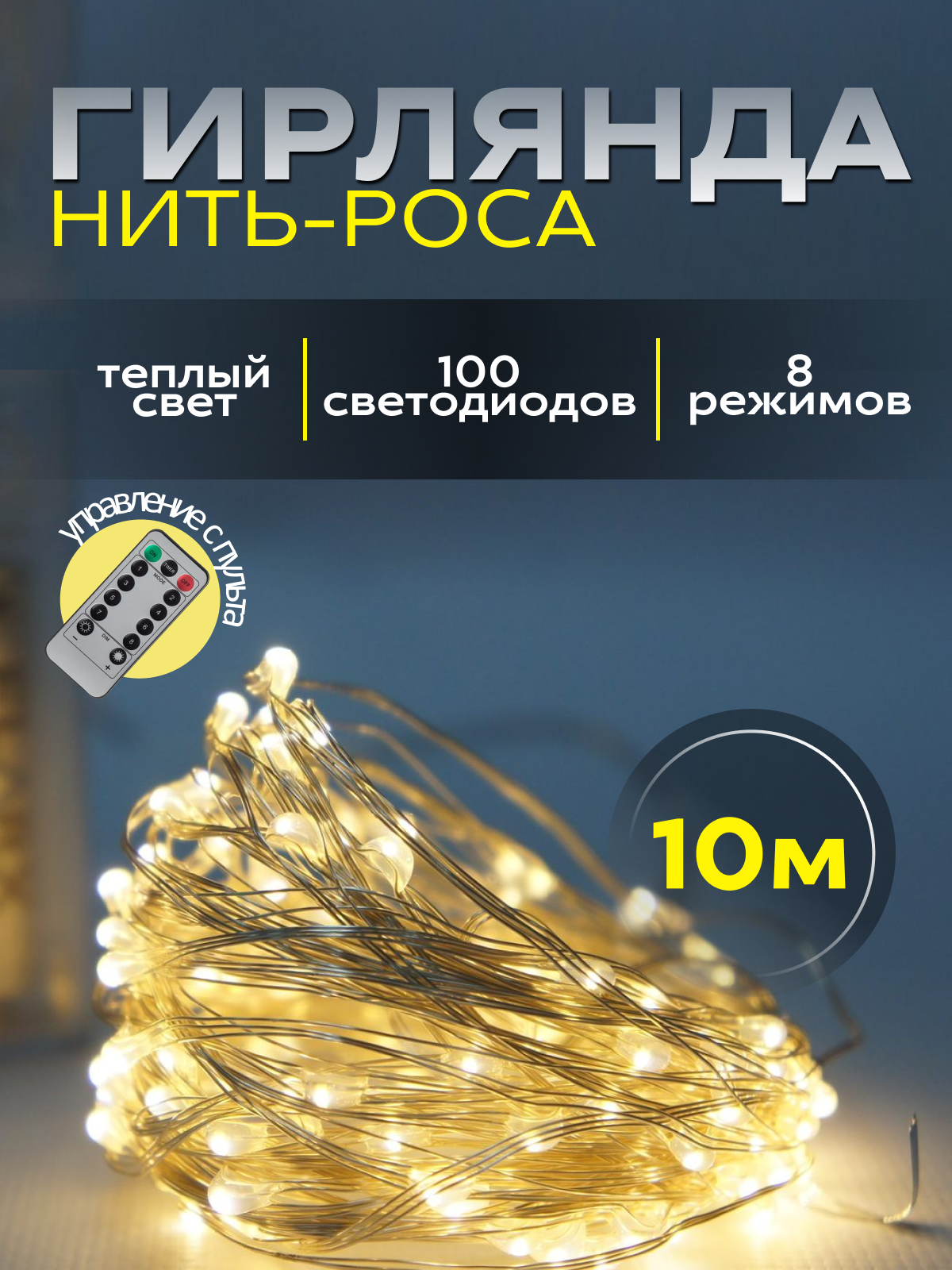Гирлянда нить светодиодная с пультом, желтый интересное: