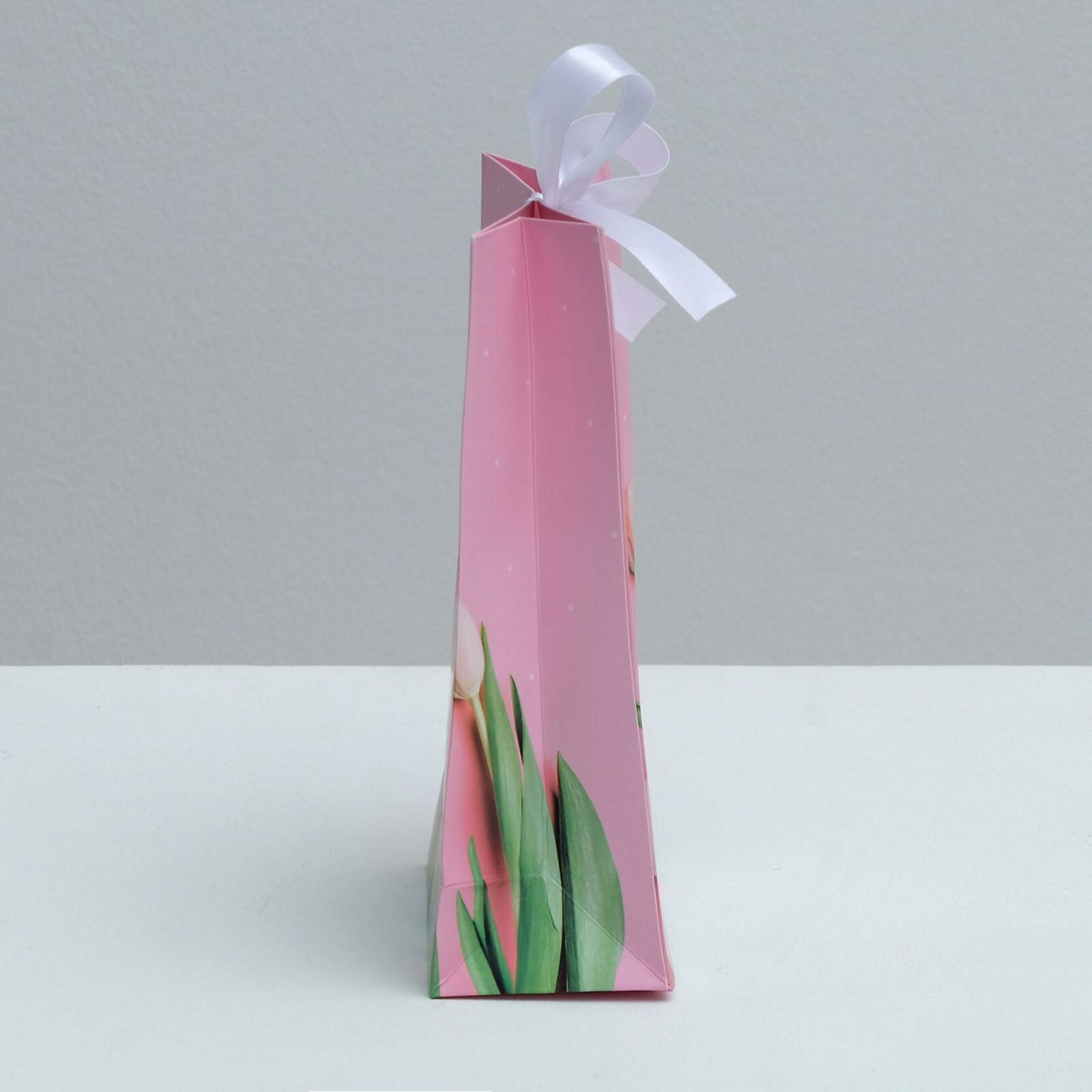 Пакет подарочный с лентой «Самой прекрасной», 13 × 23 × 7 см интересное: