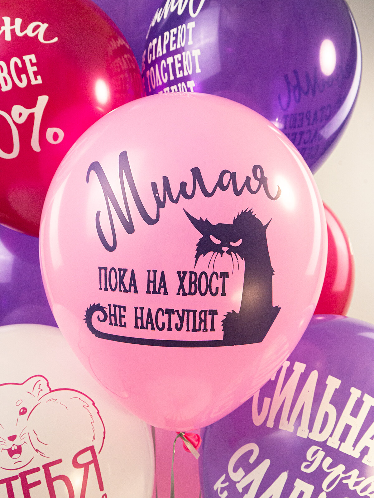 Купить Шарики воздушные для девушки, подруги с прикольными надписями "У тебя идеальна-фигура . ЩEК!" 10 шт
