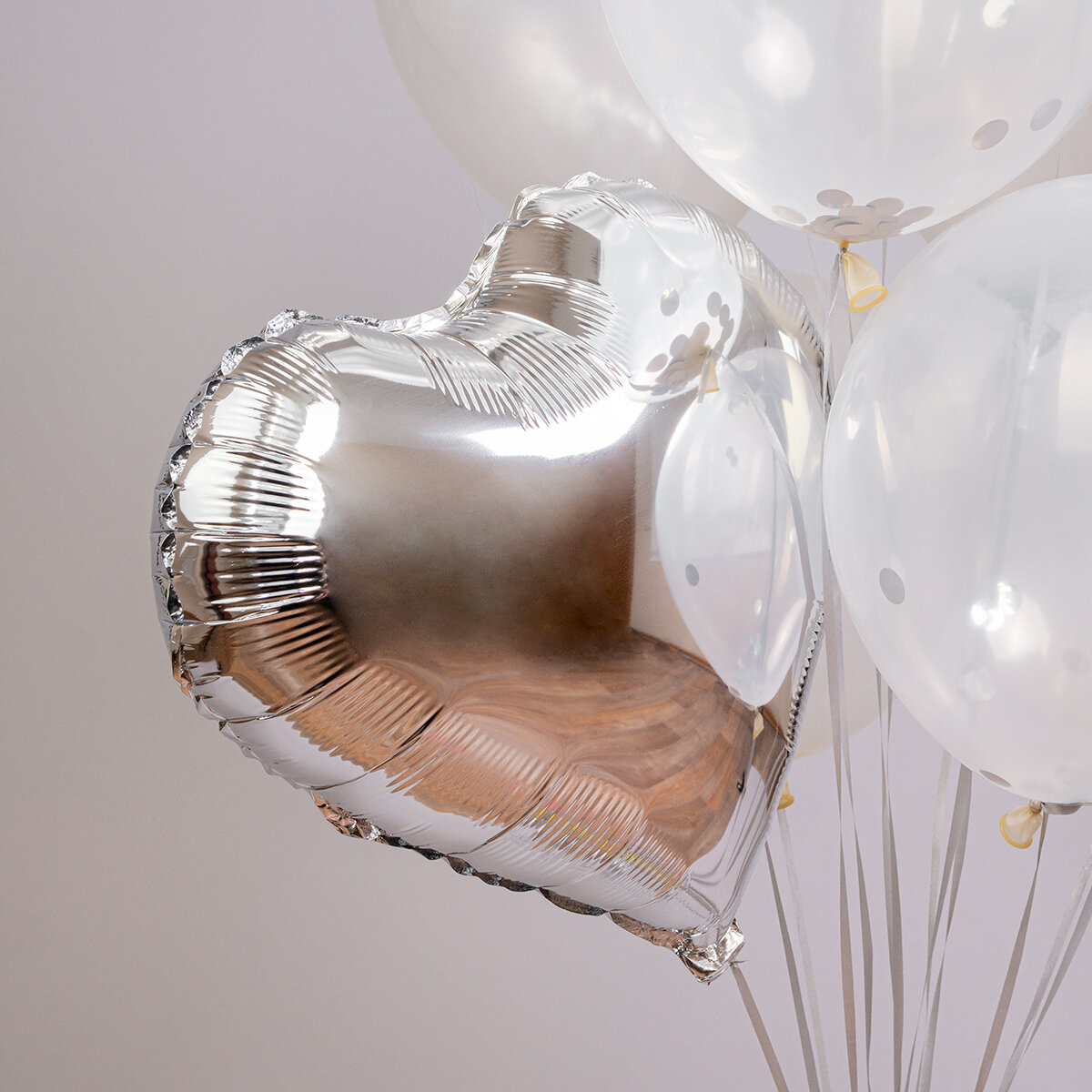Купить Набор воздушных шаров "Серебро", из фольги и латекса с конфетти, 14 штук