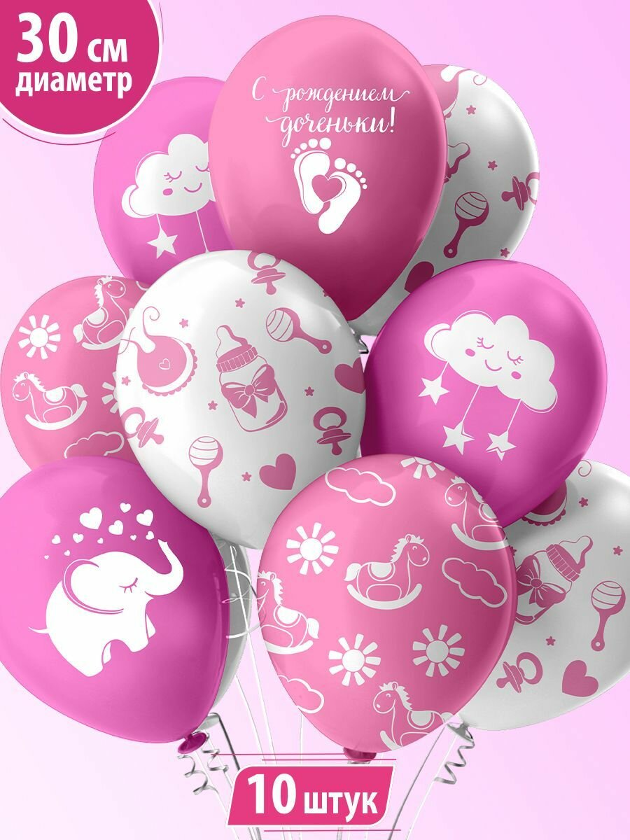 Шарики воздушные на выписку девочки "С рождением доченьки!" 30 см набор 10 штук интересное: