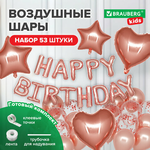 Купить Воздушные шары Brauberg набор для декора "Happy Birthday", 43 шара, розовое золото, KIDS, 591899
