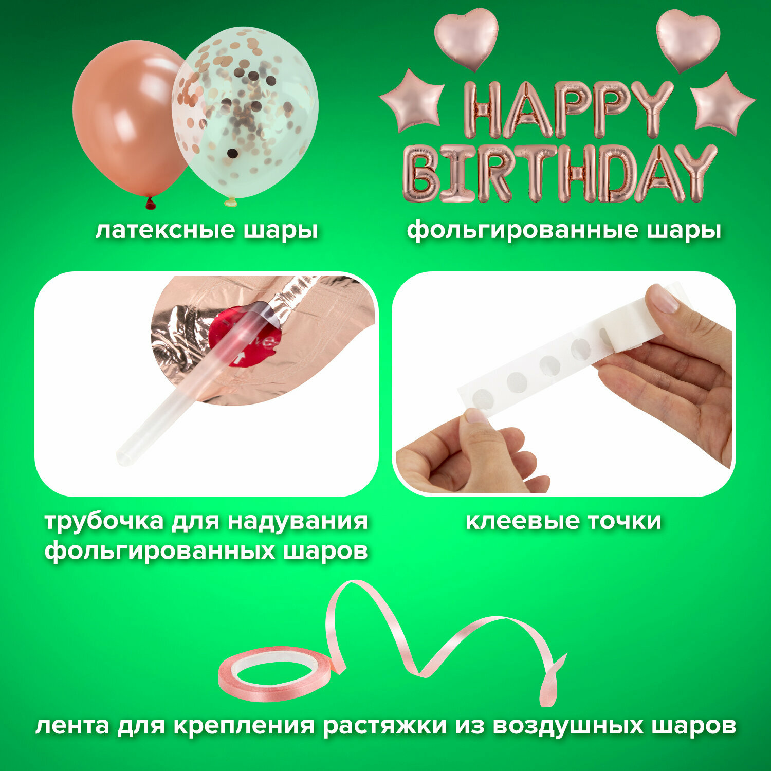 | Подробная комплектация | [Шары воздушные НАБОР ДЛЯ ДЕКОРА "Happy Birthday", 43 шара, розовое золото, BRAUBERG KIDS, 591899] X 5 шт. |
