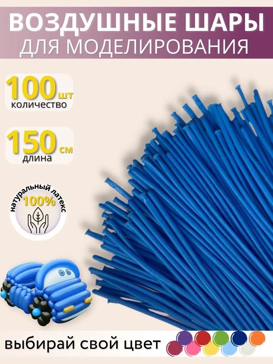 Купить Воздушные шары для моделирования Мосшар, синие,100шт -150 см