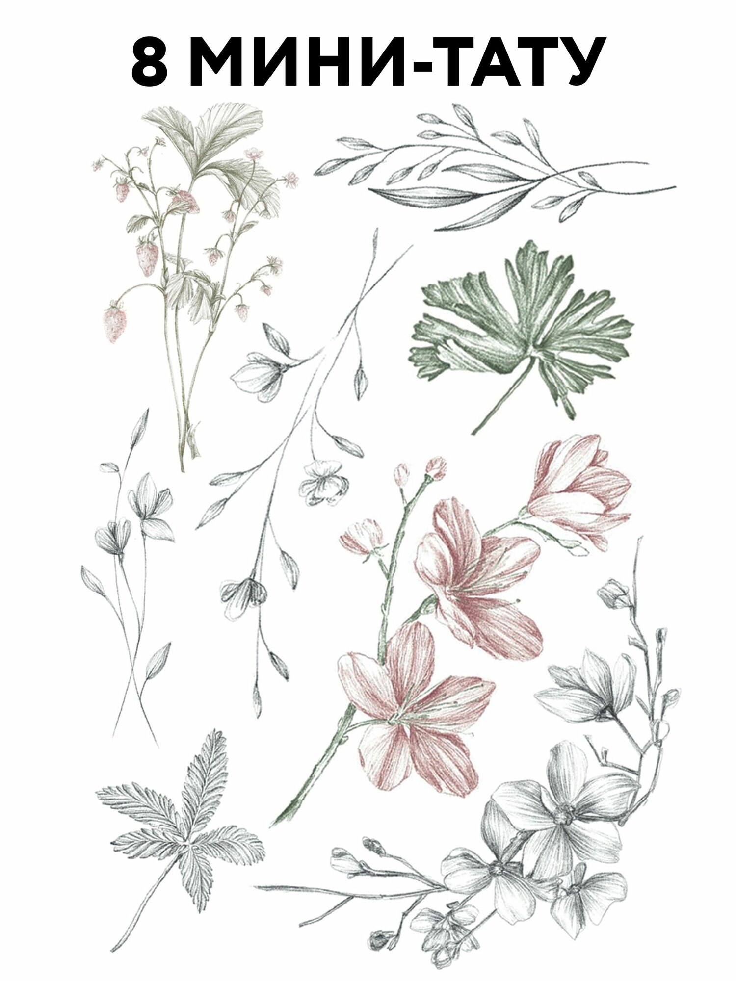 MIAMITATS Тату временные для взрослых Pastel Herbs (middle)- цветы, растения
