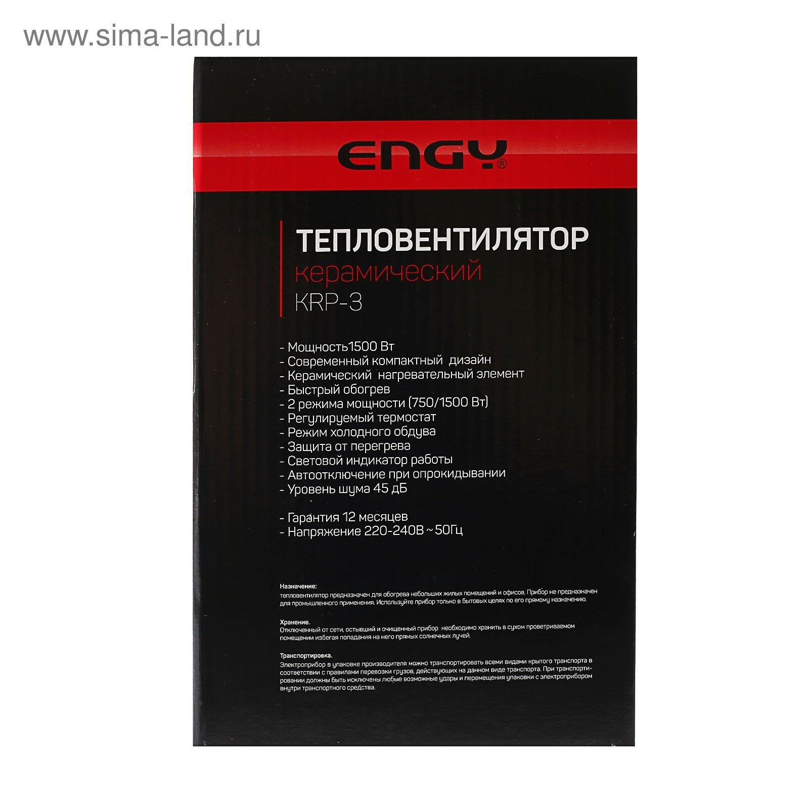 Купить Тепловентилятор Engy KRP-3 Black 4399 .