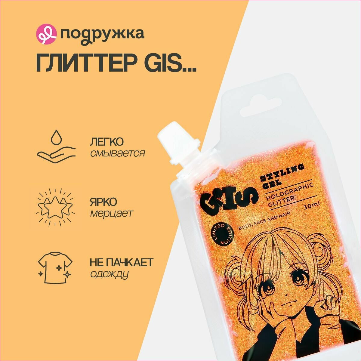 СохранитьГлиттер-гель GIS для волос, лица и тела, оттенок Flamingo, 30 мл интересное: