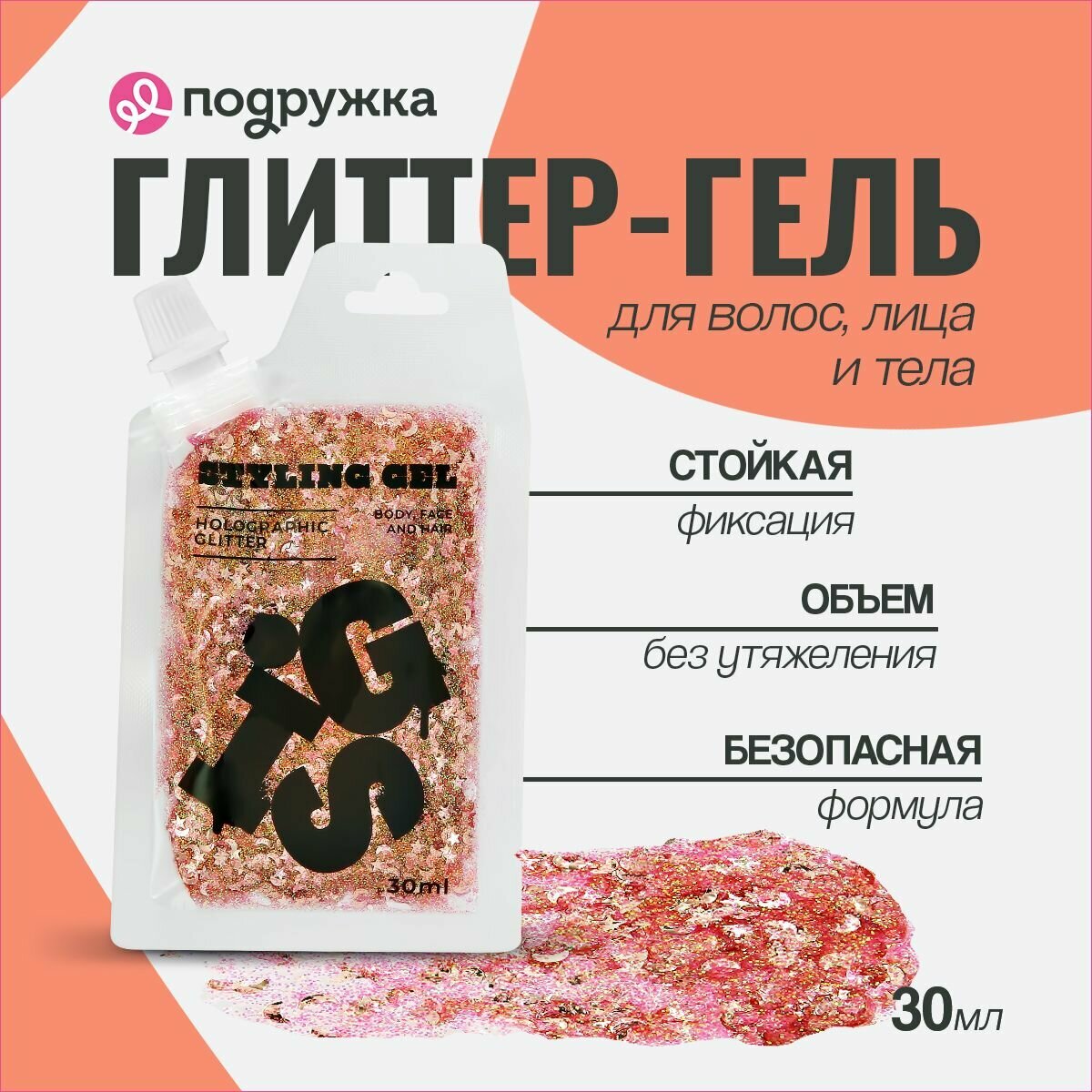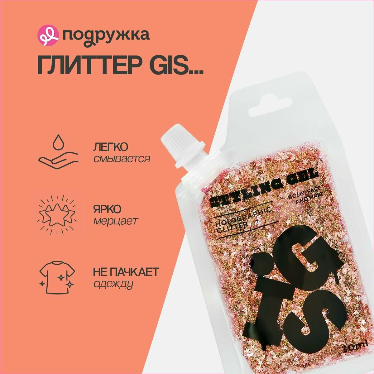 Глиттер-гель GIS для волос, лица и тела, оттенок Flamingo, 30 мл