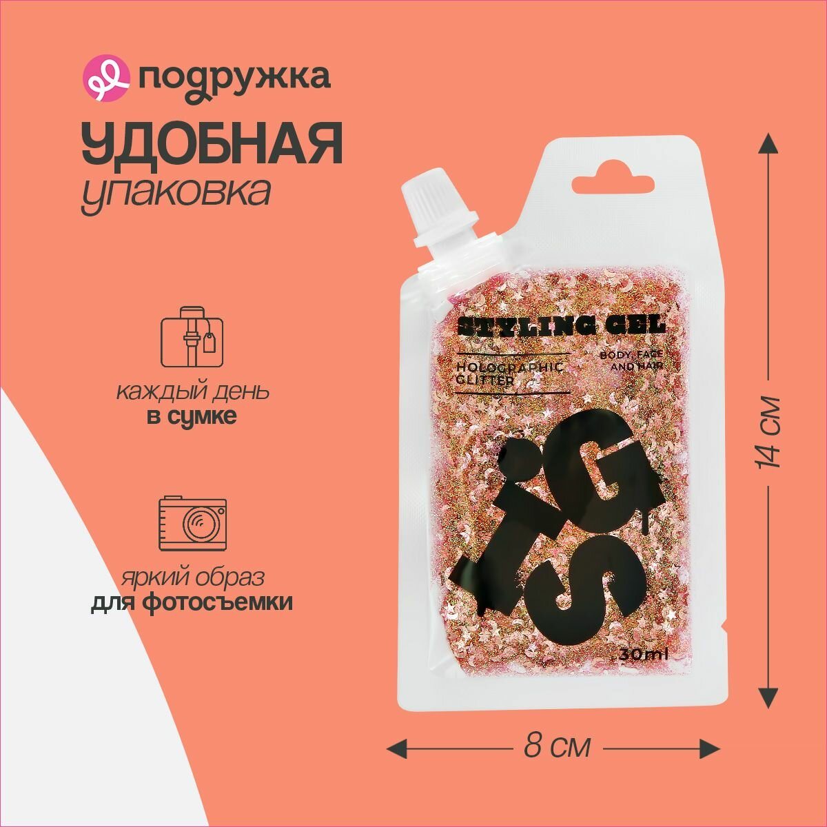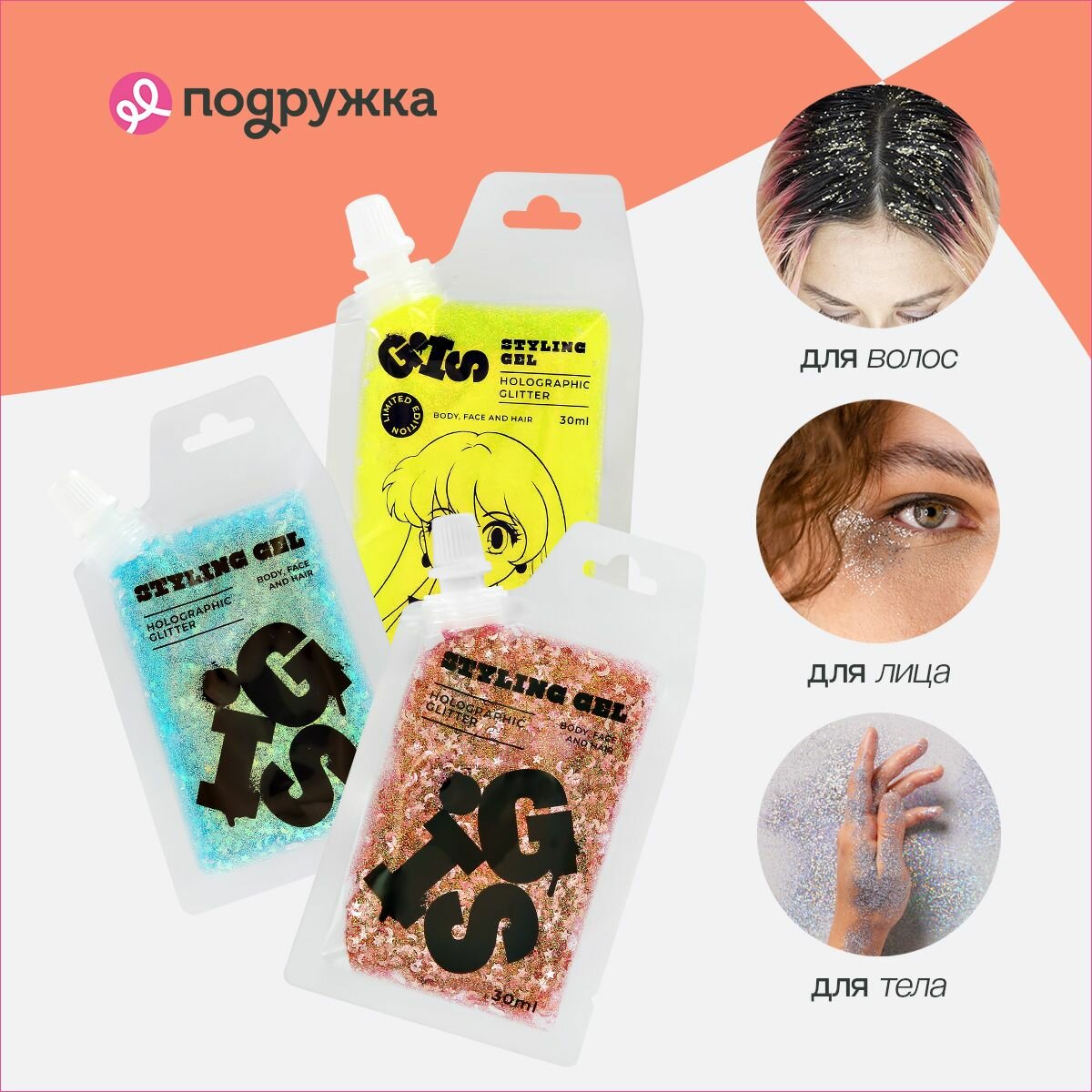 СохранитьГлиттер-гель GIS для волос, лица и тела, оттенок PINK, 30 мл интересное: