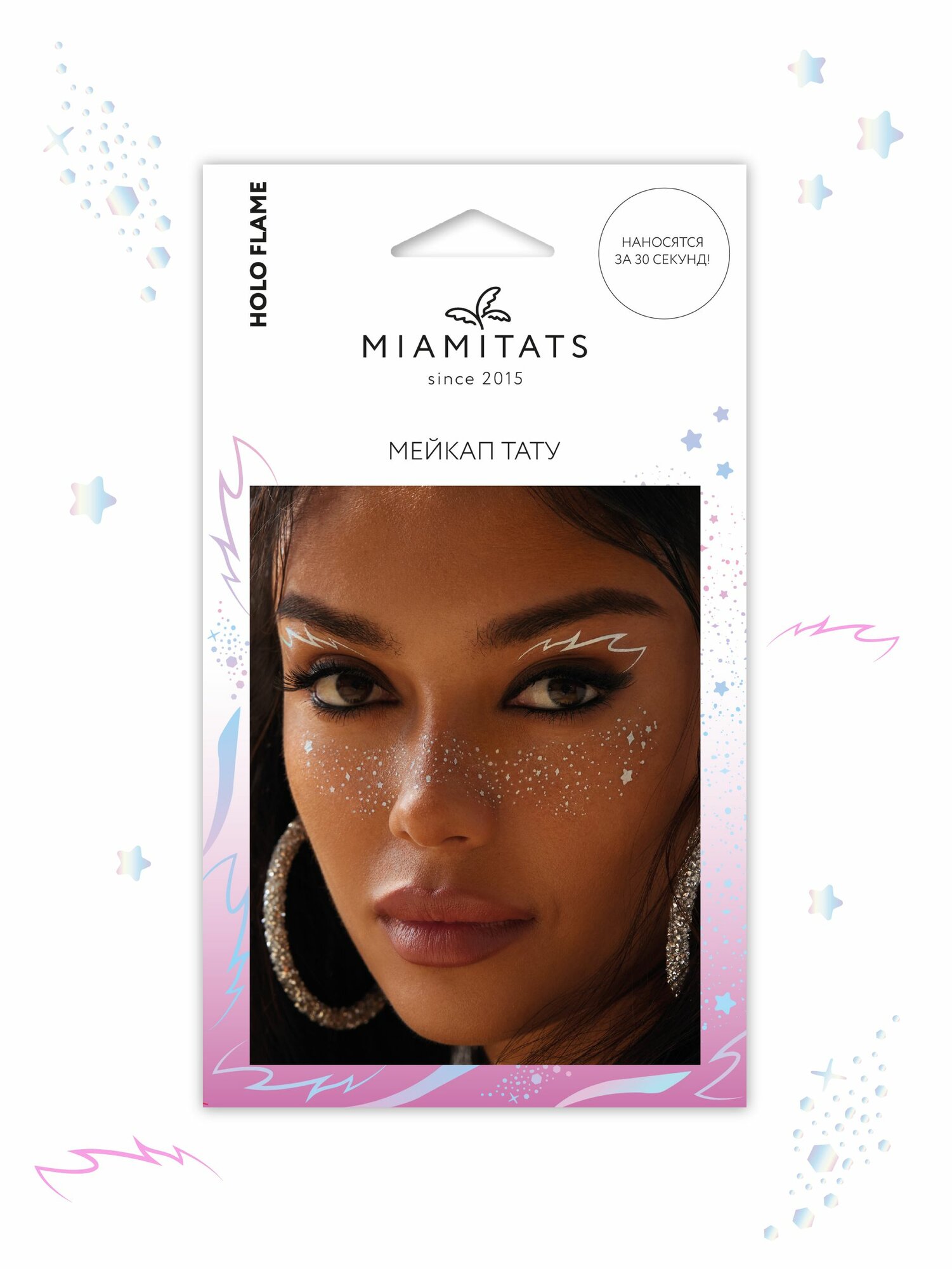 Купить MIAMITATS Набор переводных мейкап тату для макияжа лица FACE TATTOOS Holo flame