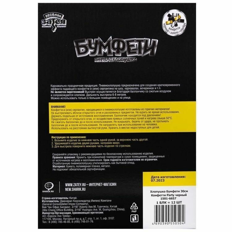 Хлопушка на праздник, Весёлая затея, Бумфети 30см черная интересное: