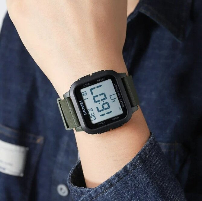 SKMEI 1894 Квадратные. Цвет черный/серый. Ремешок зеленый.