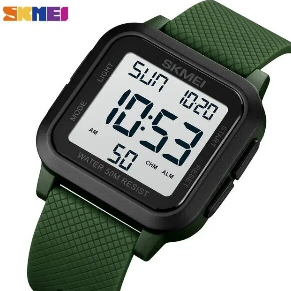 SKMEI 1894 Квадратные. Цвет черный. Ремешок зеленый.