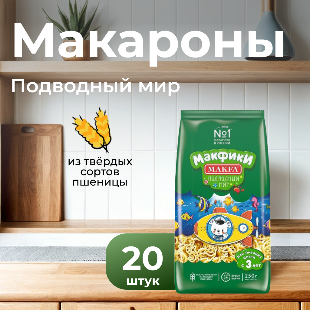 Makfa Макаронные изделия Макфики Подводный мир, 250 г, 20 упаковок интересное: