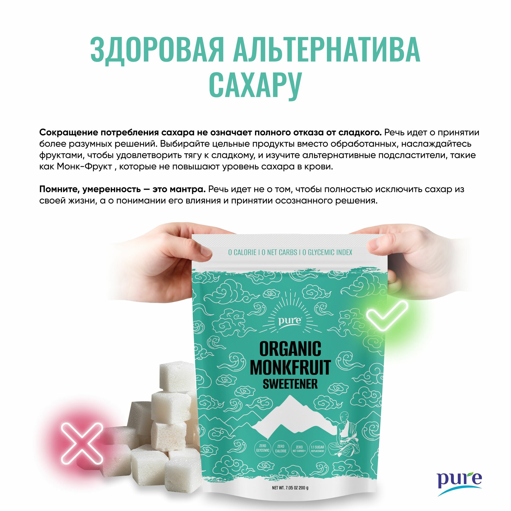 Натуральный сахарозаменитель эритрит и Монк Фрукт PURE без глютена, 200г