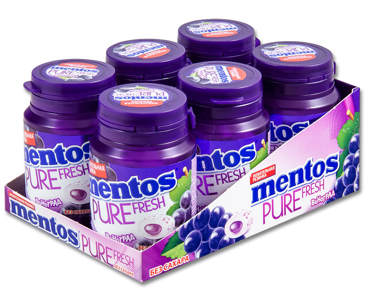 Mentos Pure fresh Виноград жевательная резинка в банке 54г 6шт
