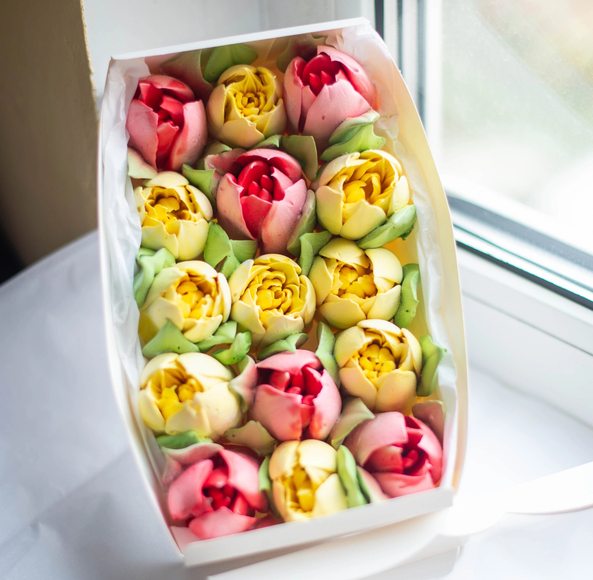 Зефир ручной работы. Зефирные цветы, зефирные тюльпаны в коробке интересное: