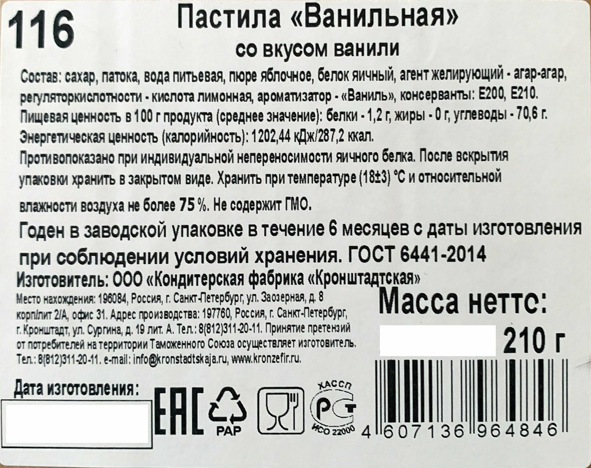 Пастила "Ванильная" КФ Кронштадтская, (1кг)